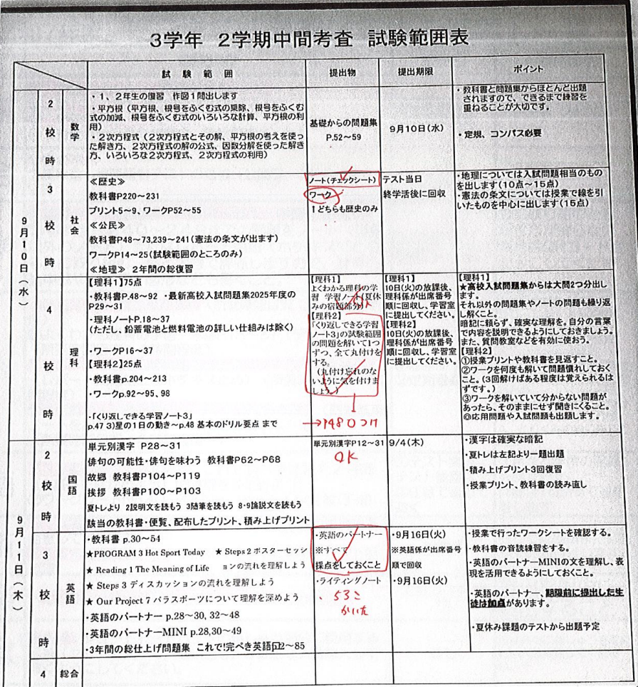 年に4回ある定期テスト,毎回思うのは「子どもたちは納得の結果だっただろうか?」ということです。みなさんの勉強計画はいかがでしたでしょうか。