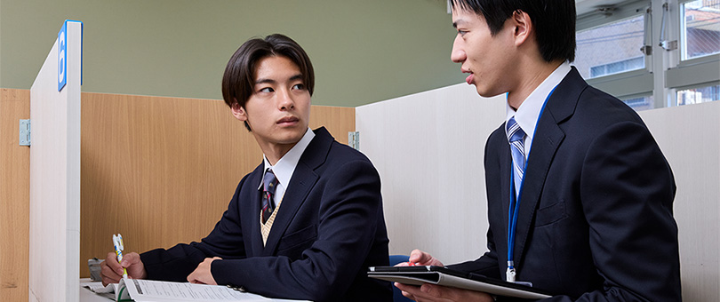 個別の学習プランに沿って授業を進めます。授業は、学習内容への理解を対話形式で確認しながら、生徒の主体的な学びを育てます。