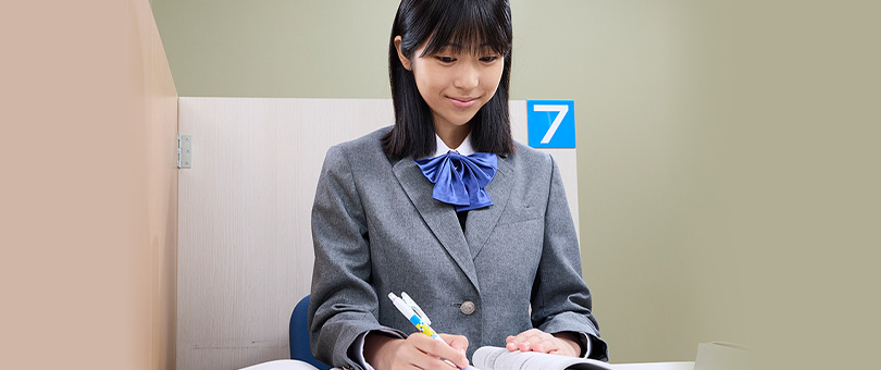 英語の実力アップには「英単語」や「英文法」の土台が重要。数学もI・Aで学ぶ「二次関数」や「三角比」、「確率」などが高2以降の土台になります。基礎を固めることにより、模試でも定期テストでも好成績が狙えます。大学入試だけでなく社会に出た後も必要な「英語4技能対策」も行い、英検®などの受験をサポートします。