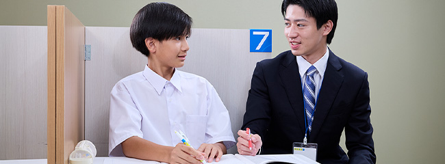 生徒一人ひとりとカウンセリングを行い、目標を設定します。最新の入試情報をもとに志望校決定のアドバイスをしたり、夏休み中の学習計画を一緒に立てたりしていきます。