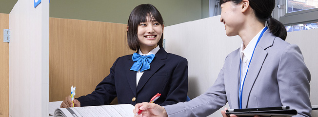 お子さまが目標に向かって「勉強しよう」と決めたときが塾をはじめるタイミングです。お手続きの際に、今後の目標や学習プランの最終確認、教材などを決めていきます。