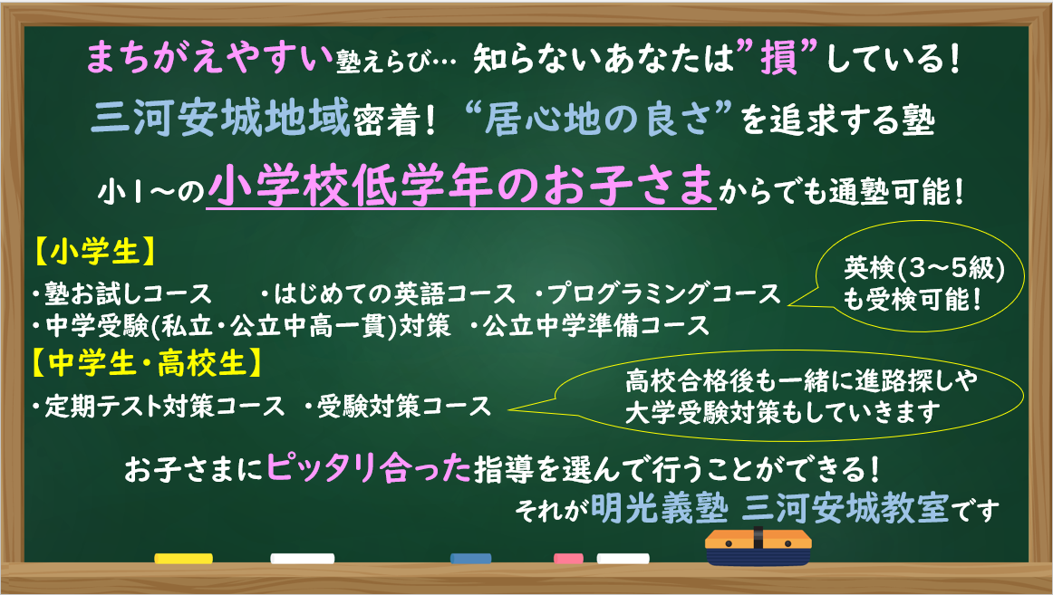 明光義塾 三河安城教室のHPをご覧頂きありがとうございます。