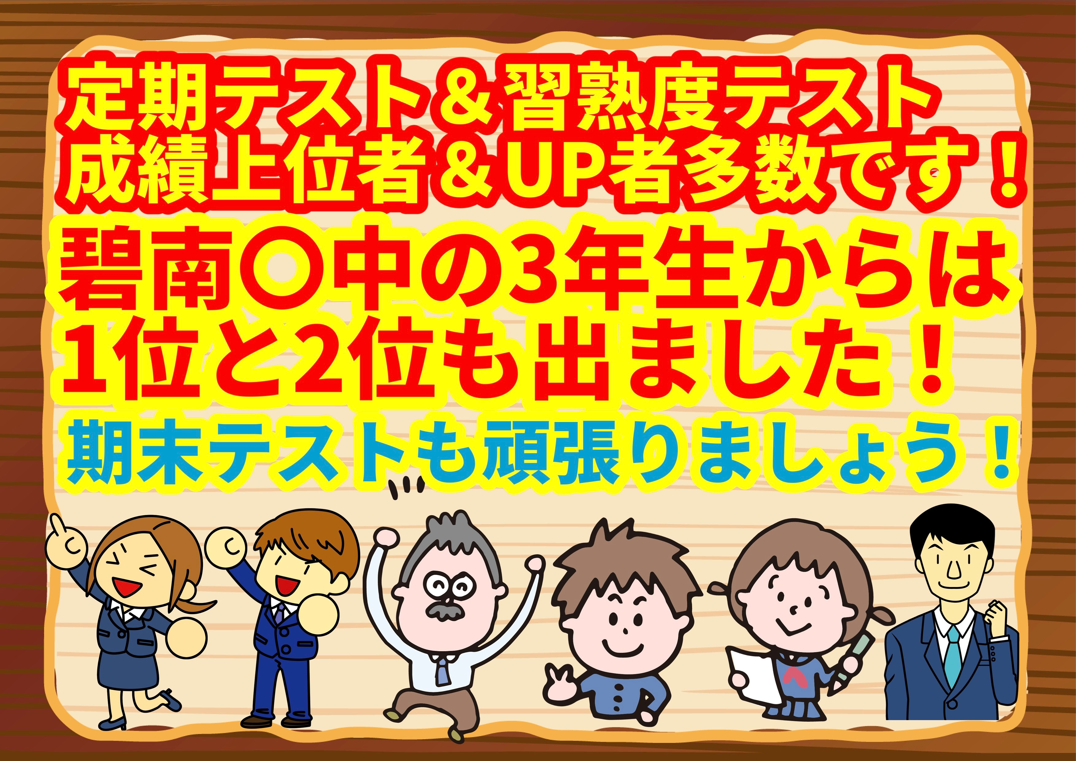 学年1位の生徒さんを筆頭に各学校上位の生徒さんも多数通塾しております。