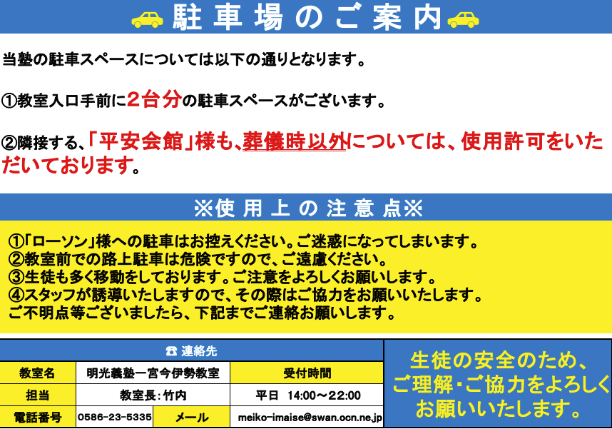 当教室の駐車場についてです。