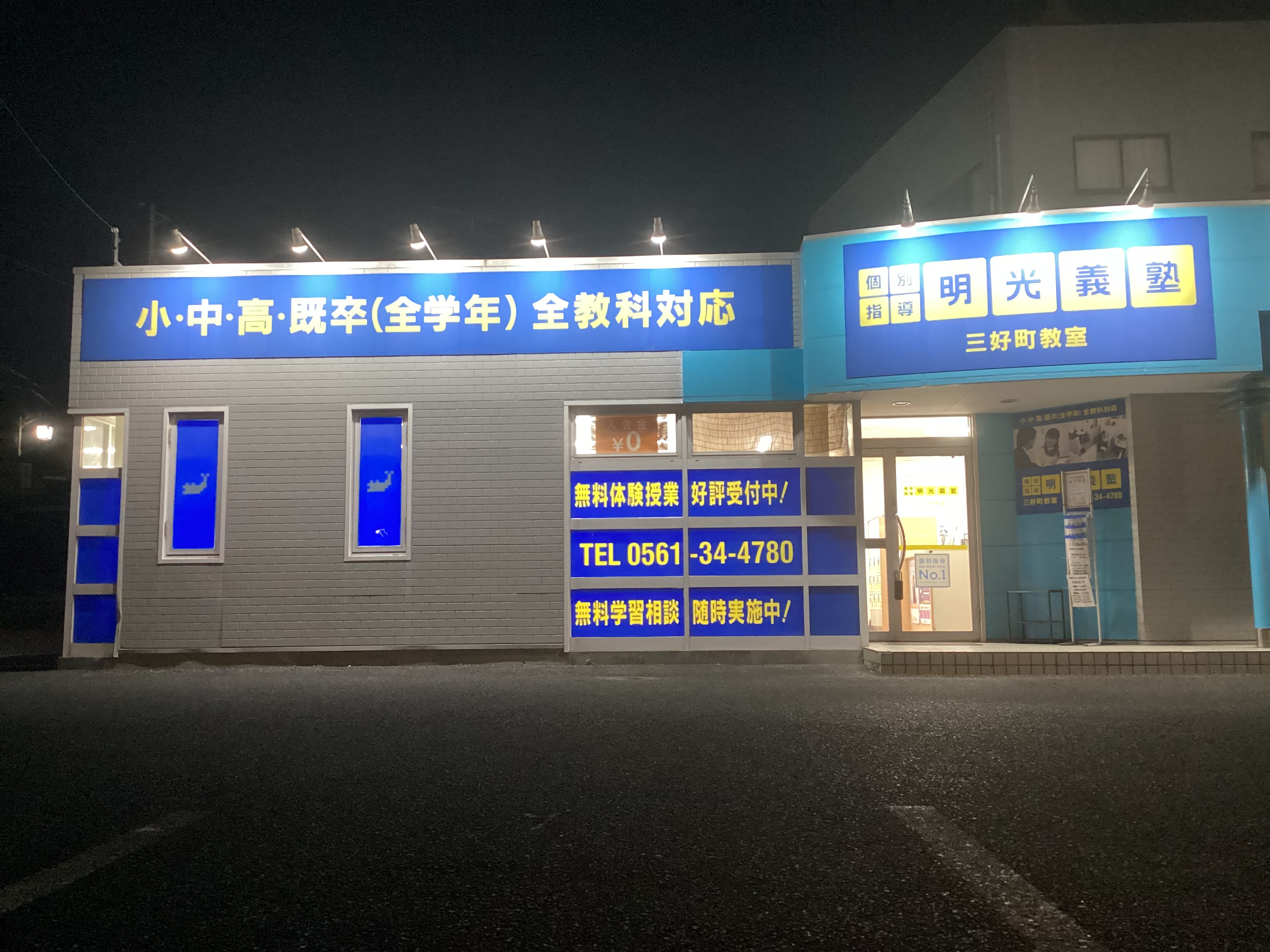 明光義塾三好町教室は、『あなたに合わせて学習できる塾』です。塾に通う目的は、生徒さんによって様々ですが、お聞きする目標に合わせてカリキュラムを作成します。そして、様々なカリキュラムに対応するには、学校のように集団に対して一つの解説よりも、お子様に合わせた個別の指導が効果的と考えます。それに加え、同じような目標やカリキュラムであっても、生徒さんによってアプローチを変えることも必要です。三好町教室では、目標、カリキュラム、アプローチをそれぞれ生徒さんに合わせて対応しています。