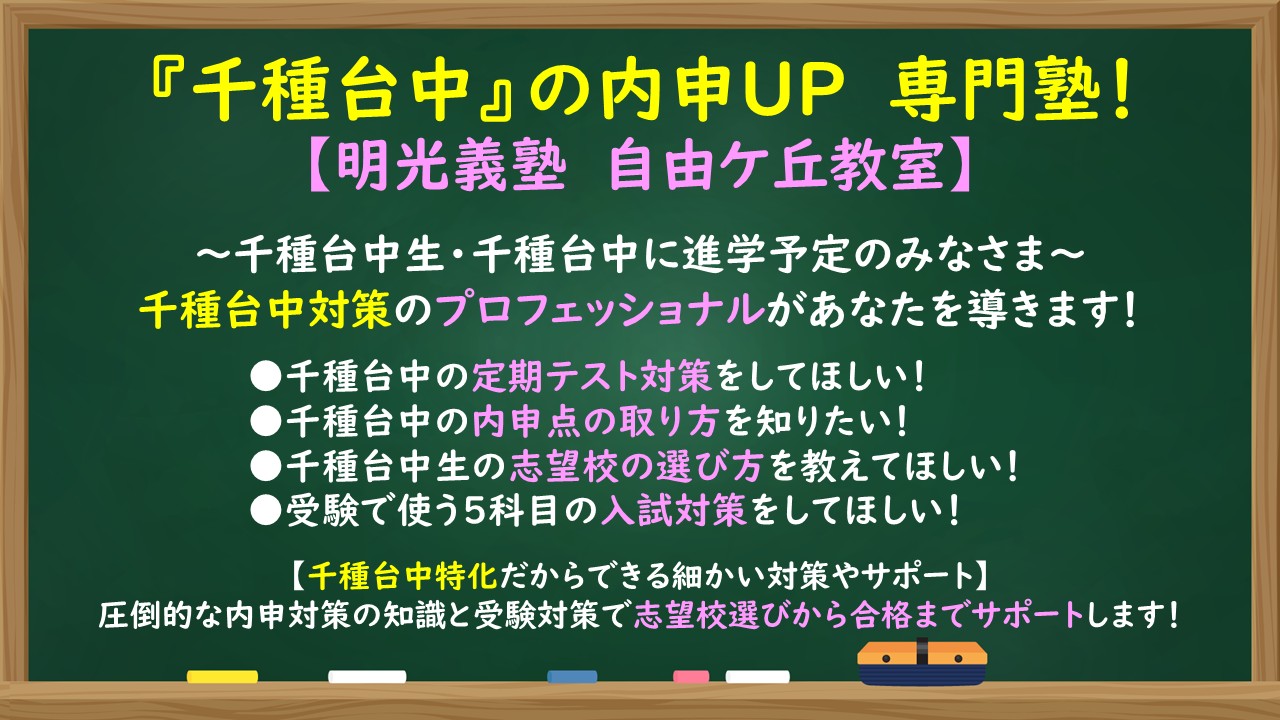 自由ケ丘教室は千種台中学校の内申UPに特化した教室です!