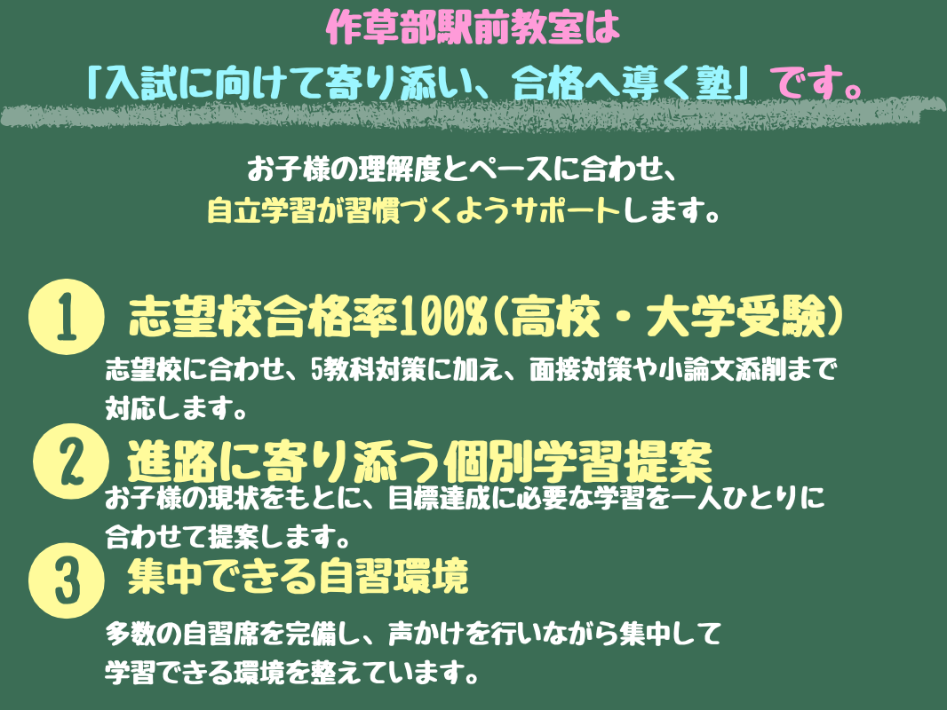 作草部駅前教室は、入試にしっかり寄り添う塾。