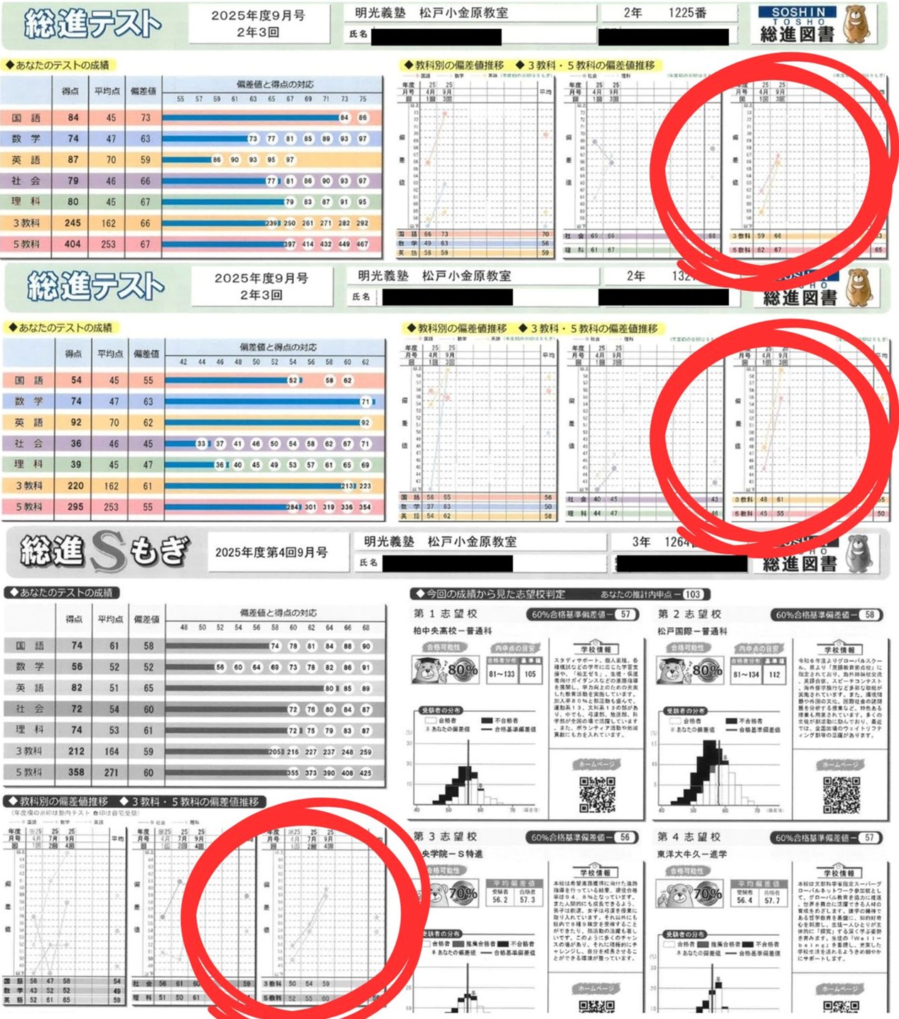 栗ヶ沢中、酒井根中、根木内中、逆井中、松戸三中など、近隣中学校の多くの生徒さんが通塾中です!