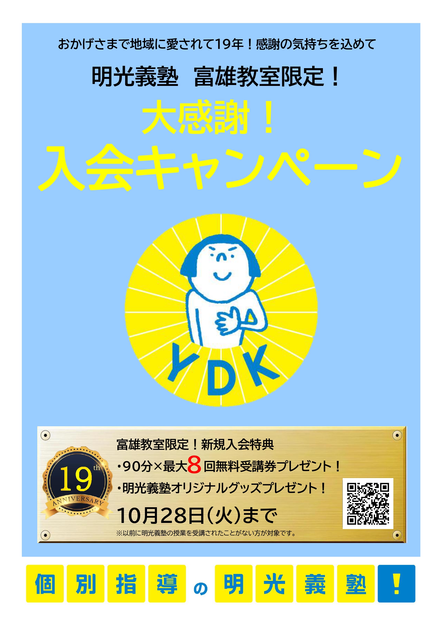 ①富雄教室限定! 90分x最大8回分の無料受講券プレゼント!!