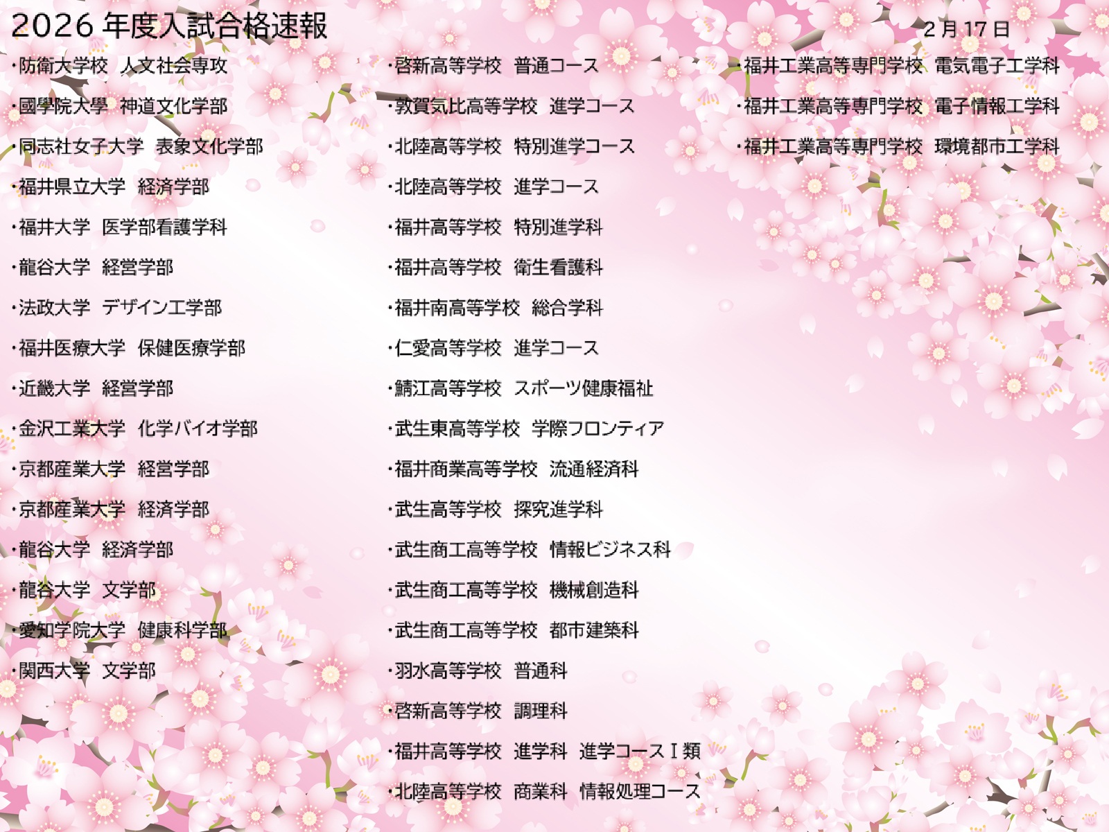 合格速報です。入試お疲れ様でした。