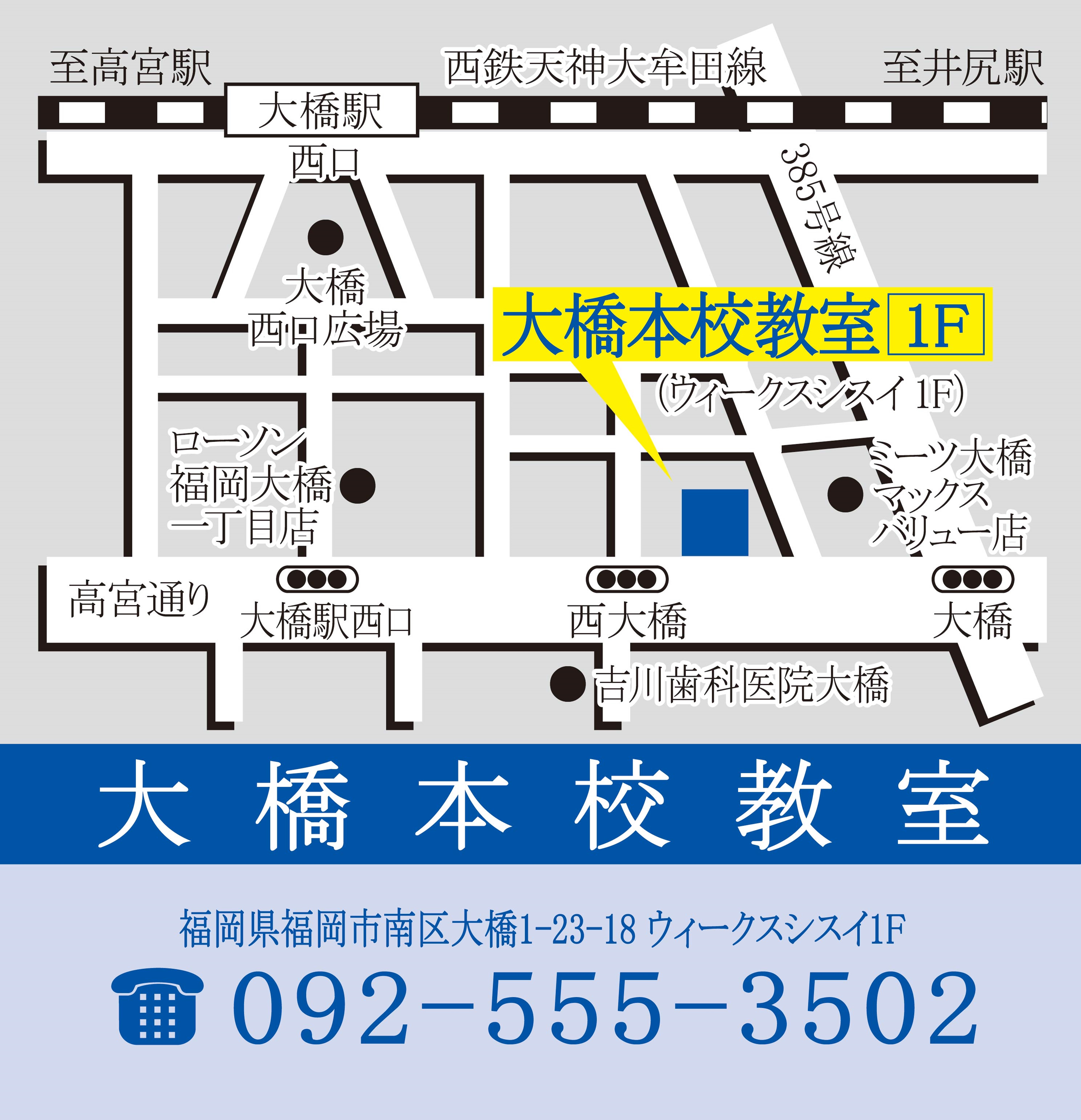 〒815-0033 福岡県福岡市南区大橋1-23-18 ウィークスシスイ1F