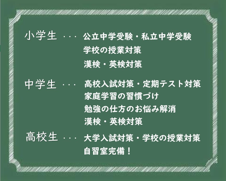 各中学校のテスト範囲に合わせた定期テスト・内申対策から高校受験対策まで両方できます。