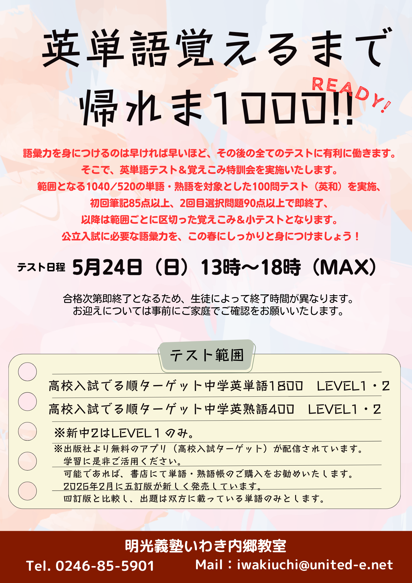 定期テストや受験に向けて、日々の積み重ねが結果につながります。