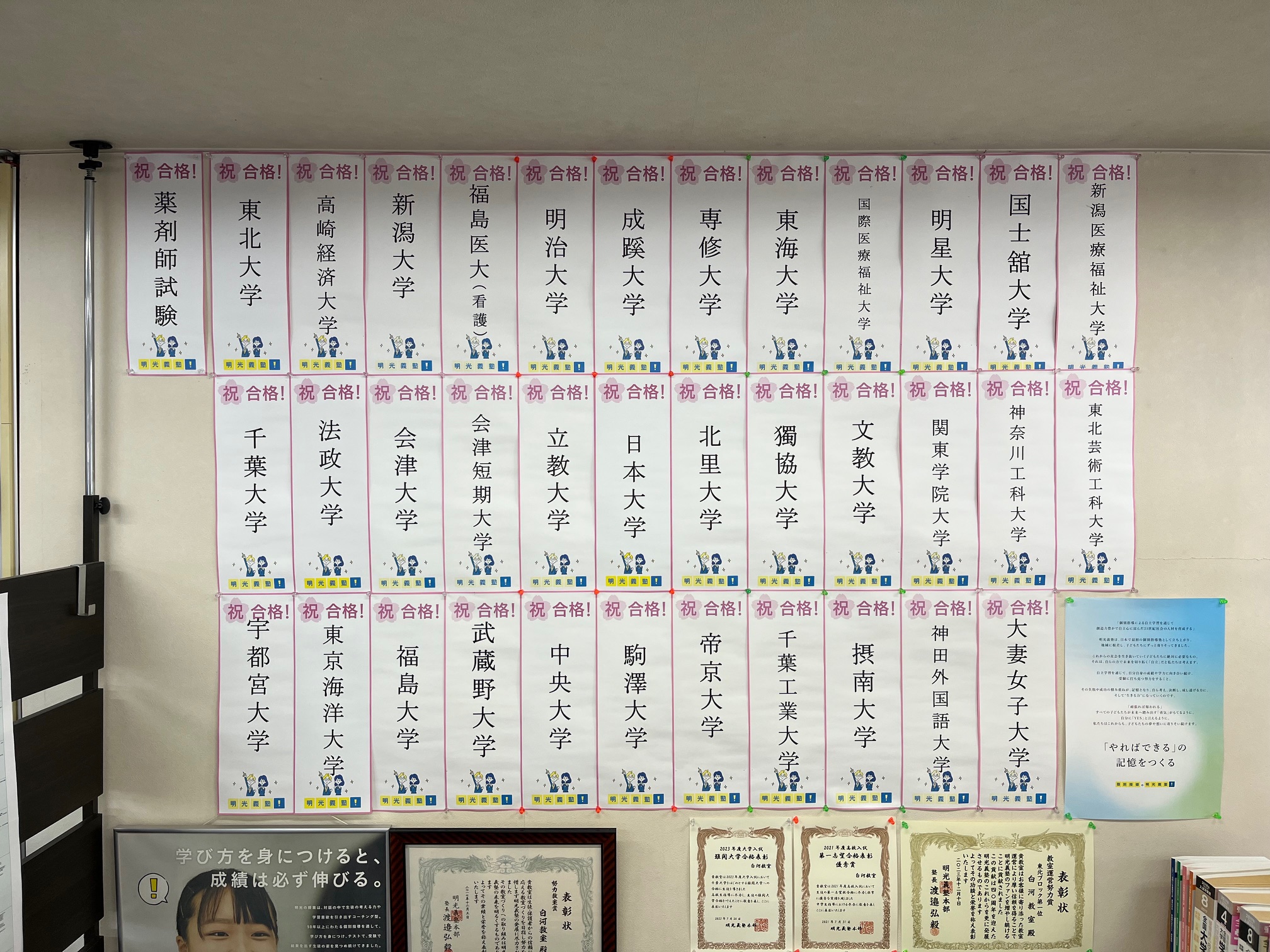 大学合格実績。この教室に通っていた生徒のみの実績です