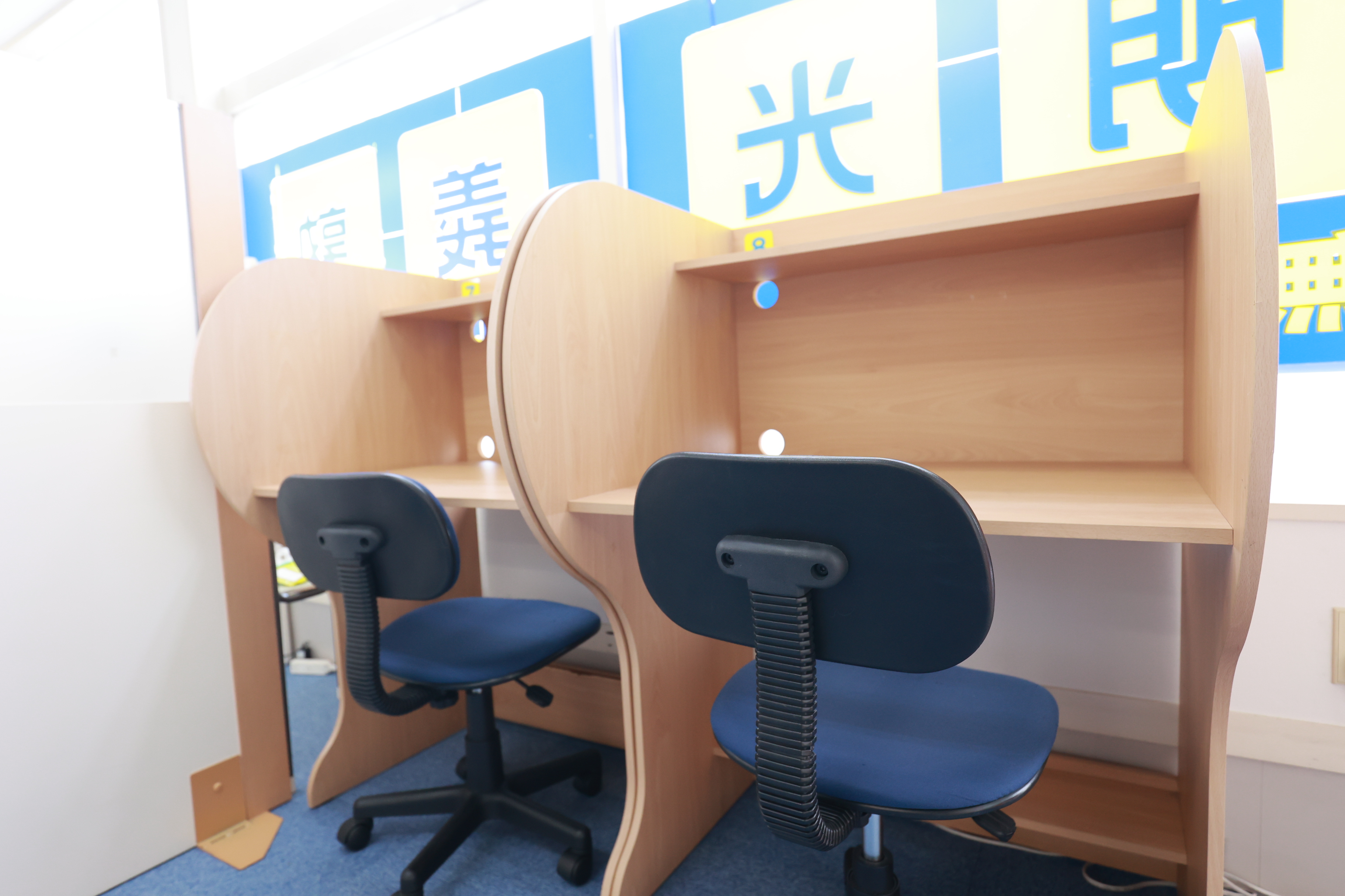 仕切りのついた座席で、講師と一緒に勉強を進めます。