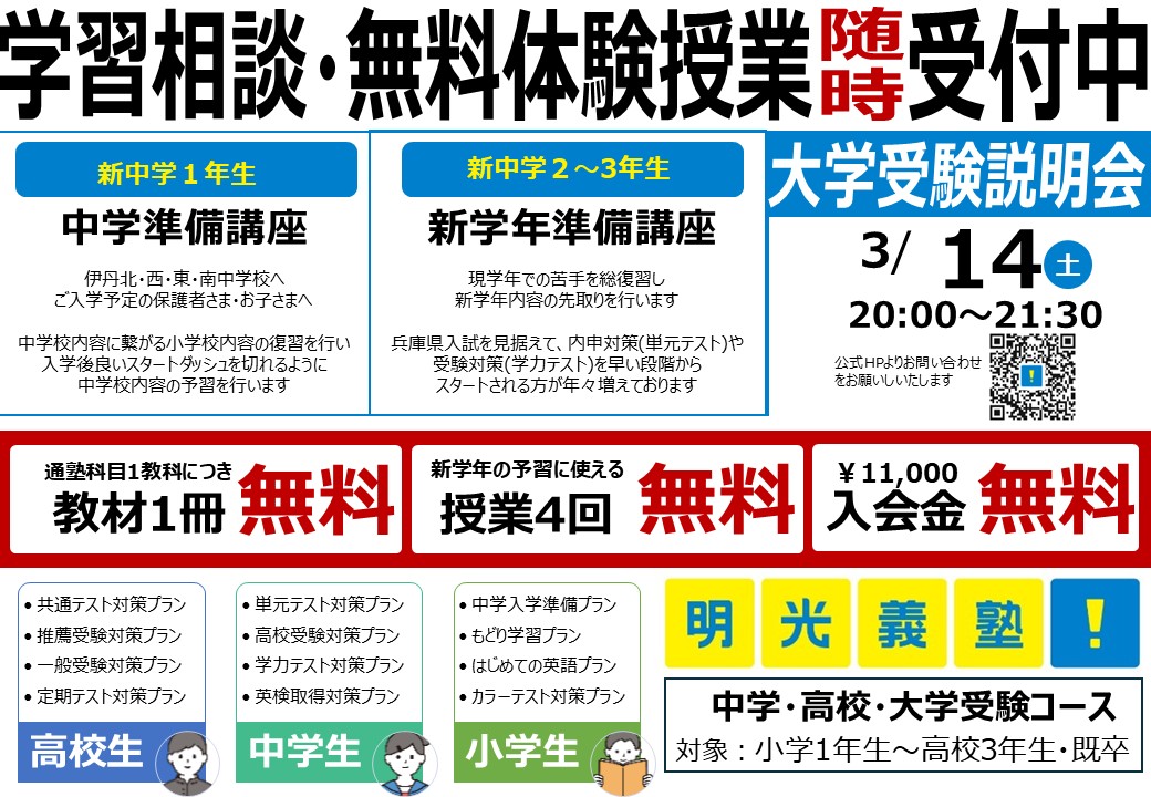 新年度度生徒募集スタート!各学年新学年準備講座をご用意しております!