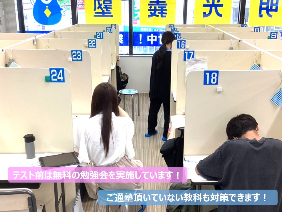 ☆自習席完備:事前連絡不要でご利用いただけます。授業が無い日もいつでも利用OKです