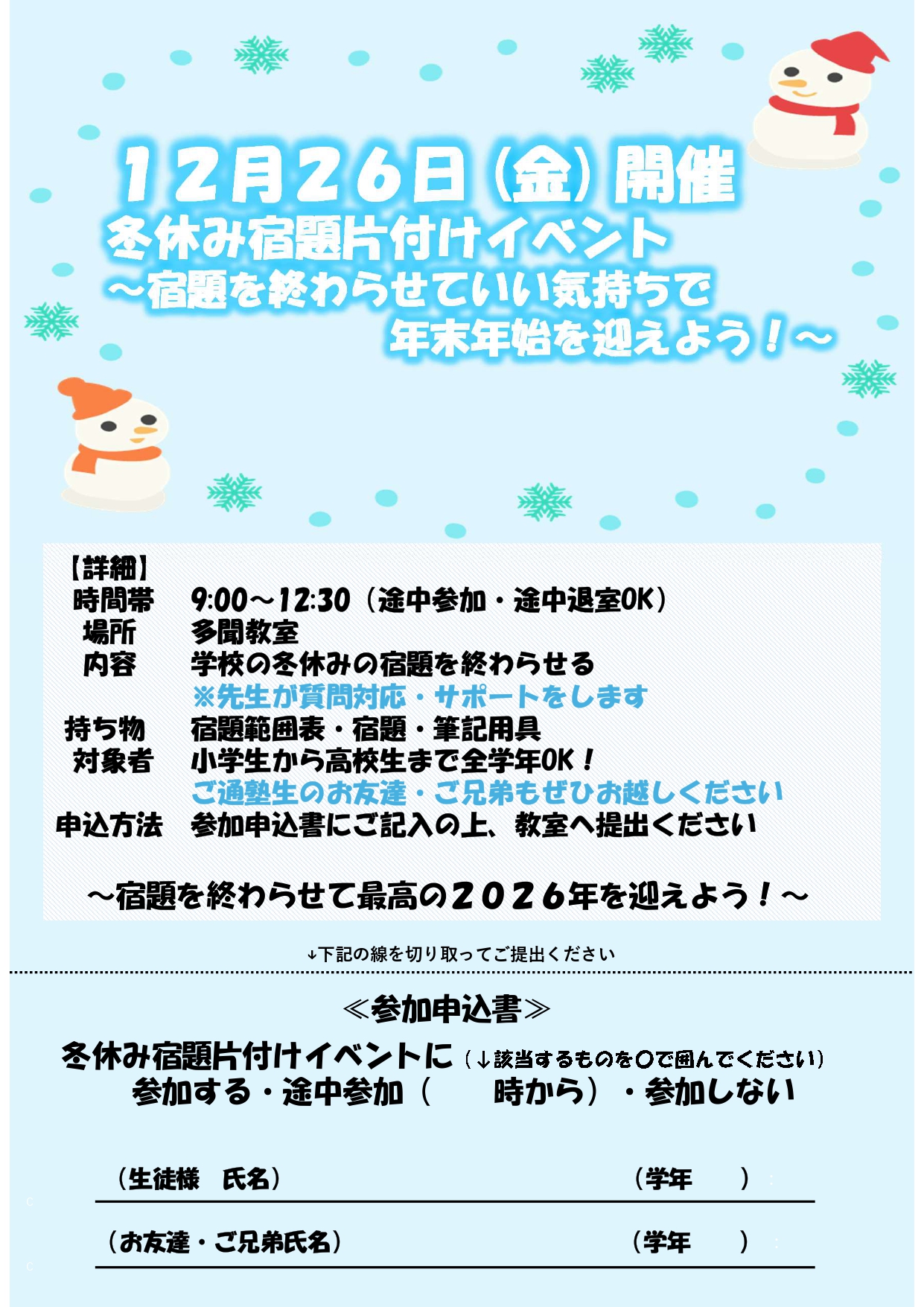 冬期講習・受験対策実施中!