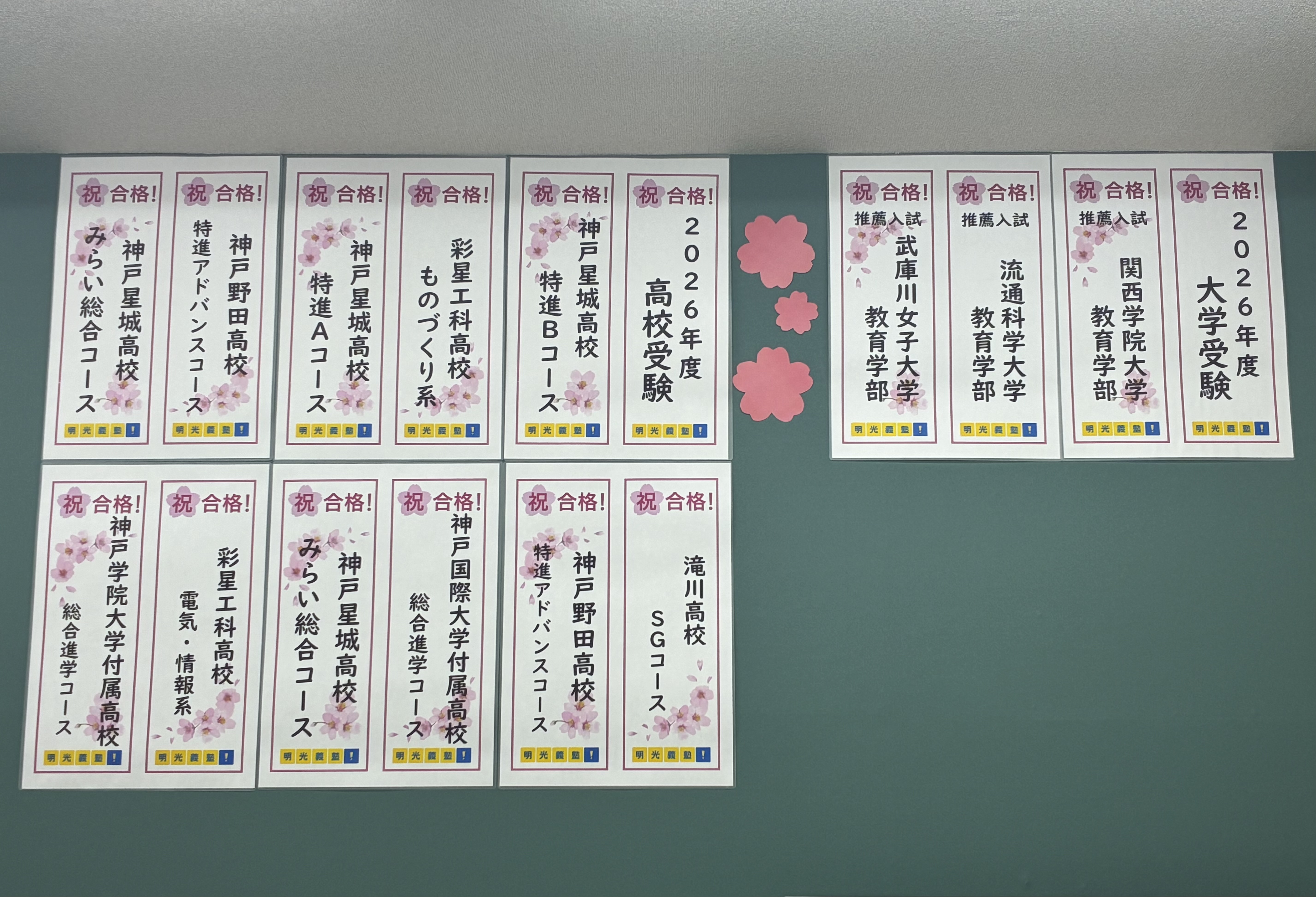 舞子教室、名谷教室、イオンジェームス山教室、多聞教室、西神南教室、神戸本山教室、住吉教室、RIC教室、神戸上沢通教室の実績です。