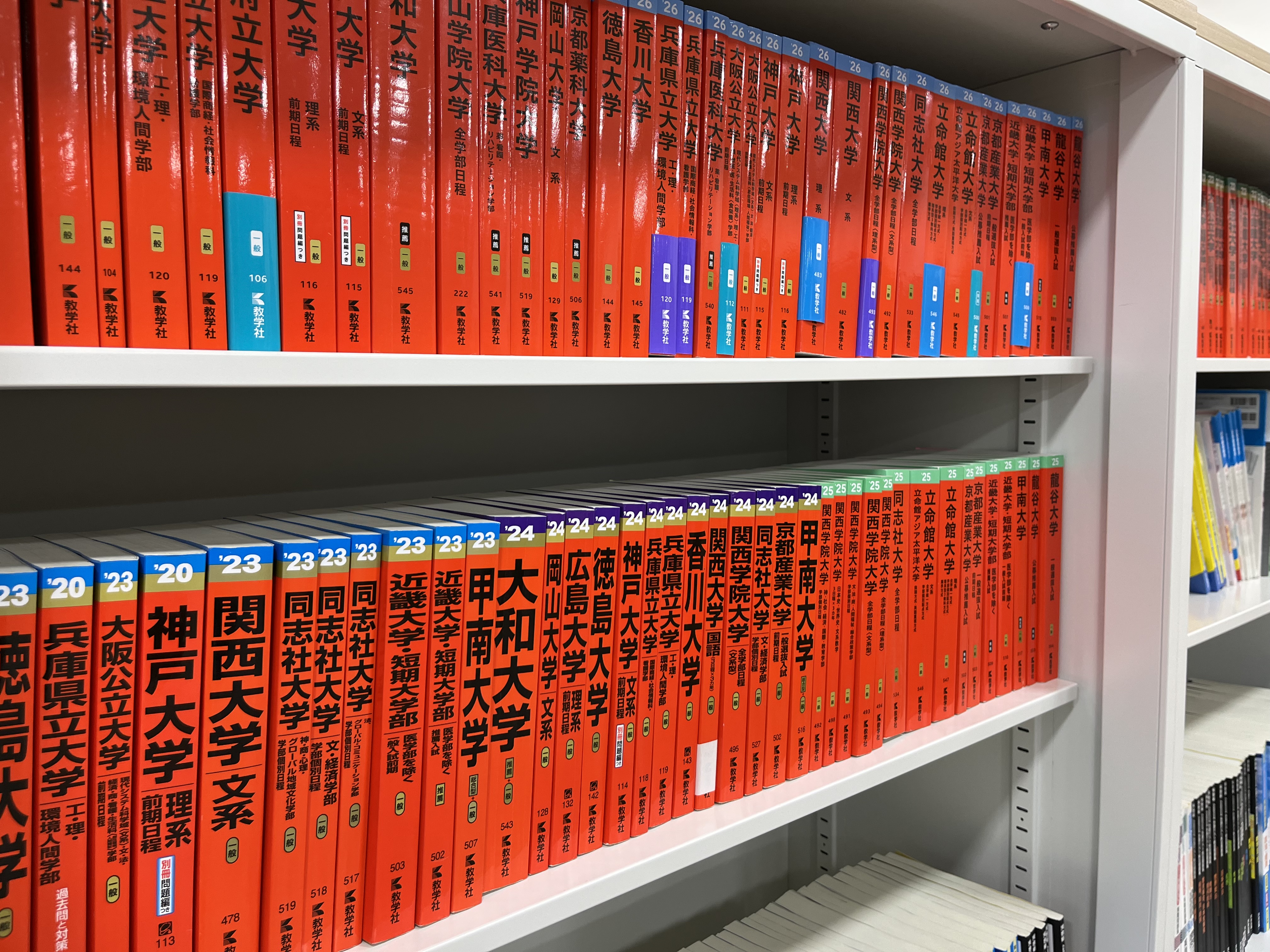 大学受験: 同志社大学、立命館大学、関西大学、関西学院大学、近畿大学、関西外国語大学、大和大学、京都産業大学、甲南大学、龍谷大学、京都橘大学、摂南大学、追手門学院大学、神戸学院大学、兵庫医科大学、大阪医療薬科大学、関西看護医療大学、森ノ宮医療大学、川崎医療福祉大学、関西福祉大学、甲南女子大学、京都女子大学、園田学園大学、大阪経済大学、岡山理科大学、大阪電気通信大学、四天王寺大学、流通科学大学、太成学院大学、福山大学、大阪芸術大学、嵯峨美術短期大学、北海道立農業大学校
