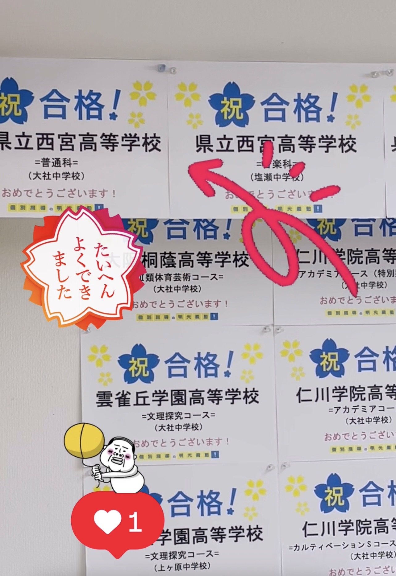【2023年】西宮東高校自然科学類型(推)鳴尾高校人間類型(推)西宮北高校科学探究類型(推)県立西宮高校(推)武庫荘総合高校(推)葺合高校国際科(推)科学技術高校電気情報工学科(推)神戸星稜高校生命科学類型(推)神港橘高校みらい商学科(推)/武庫川女子高校、報徳学園高校、仁川学院高校、百合学園高校、園田学園高校、育英高校、神戸龍谷高校、関西学院高校、神戸学院高校他(2026.3.5時点)