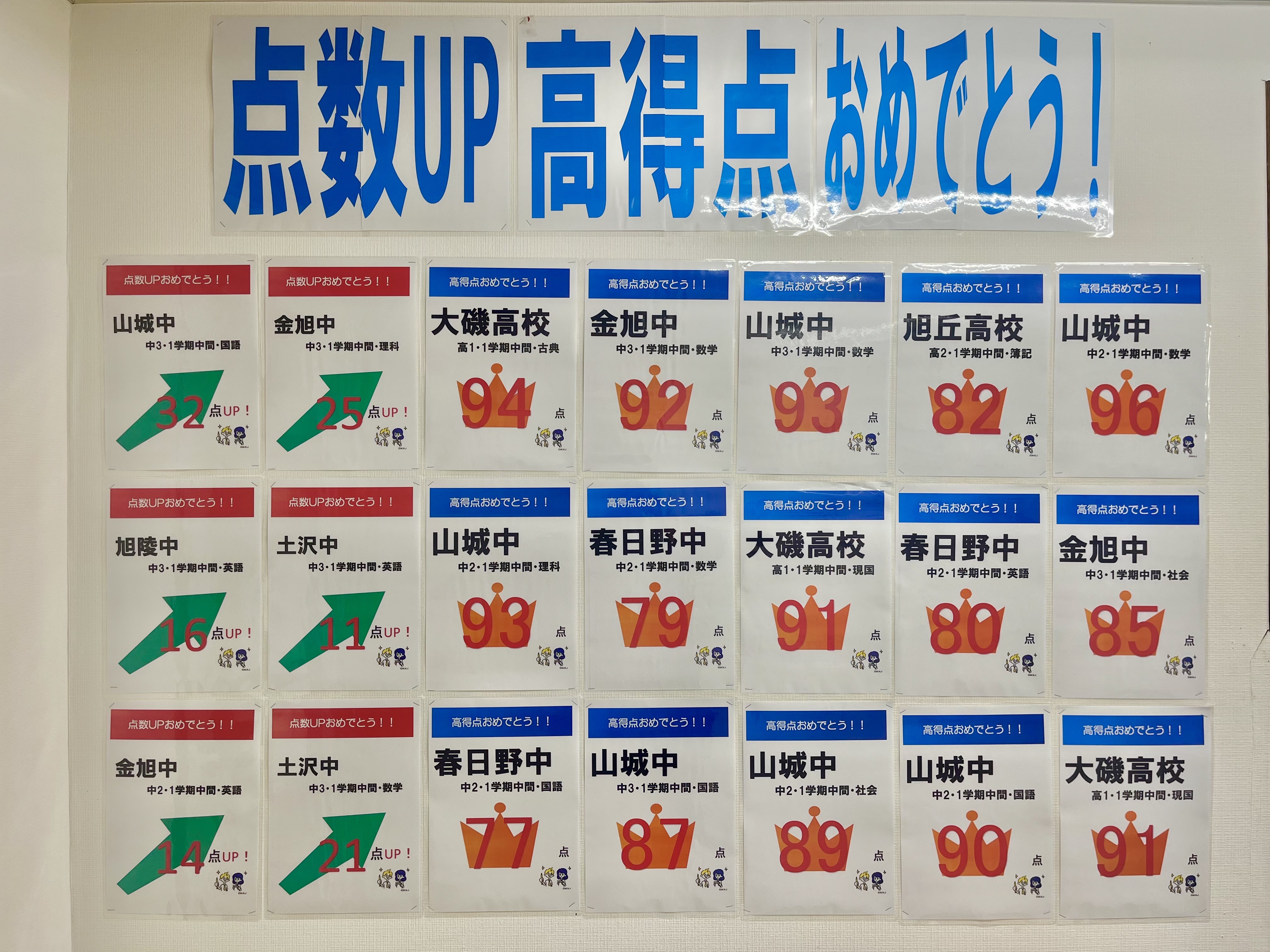 山城中2年(数学)98点!土沢中3年(英語)92点!金旭中2年(英語)15点UP!