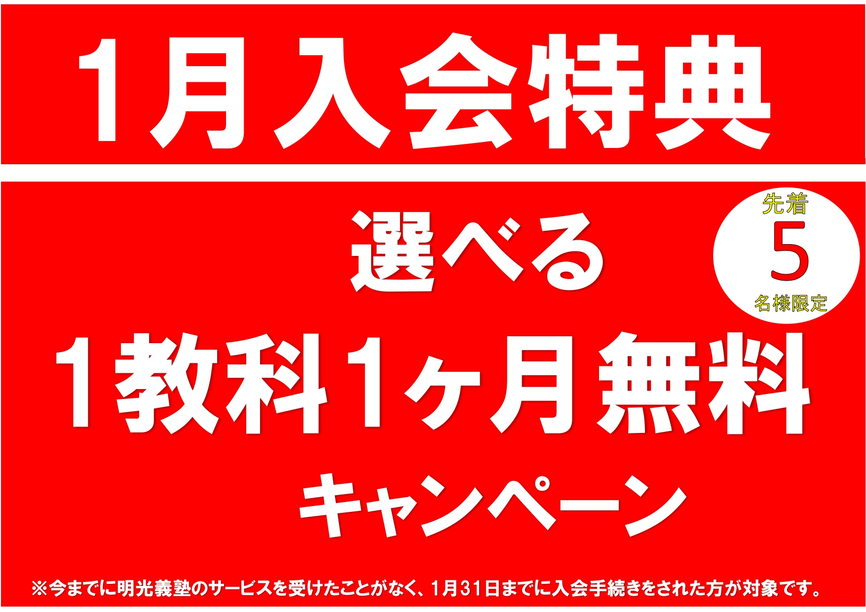 1月入会特典 選べる1教科1カ月無料プレゼント 先着5名様限定!