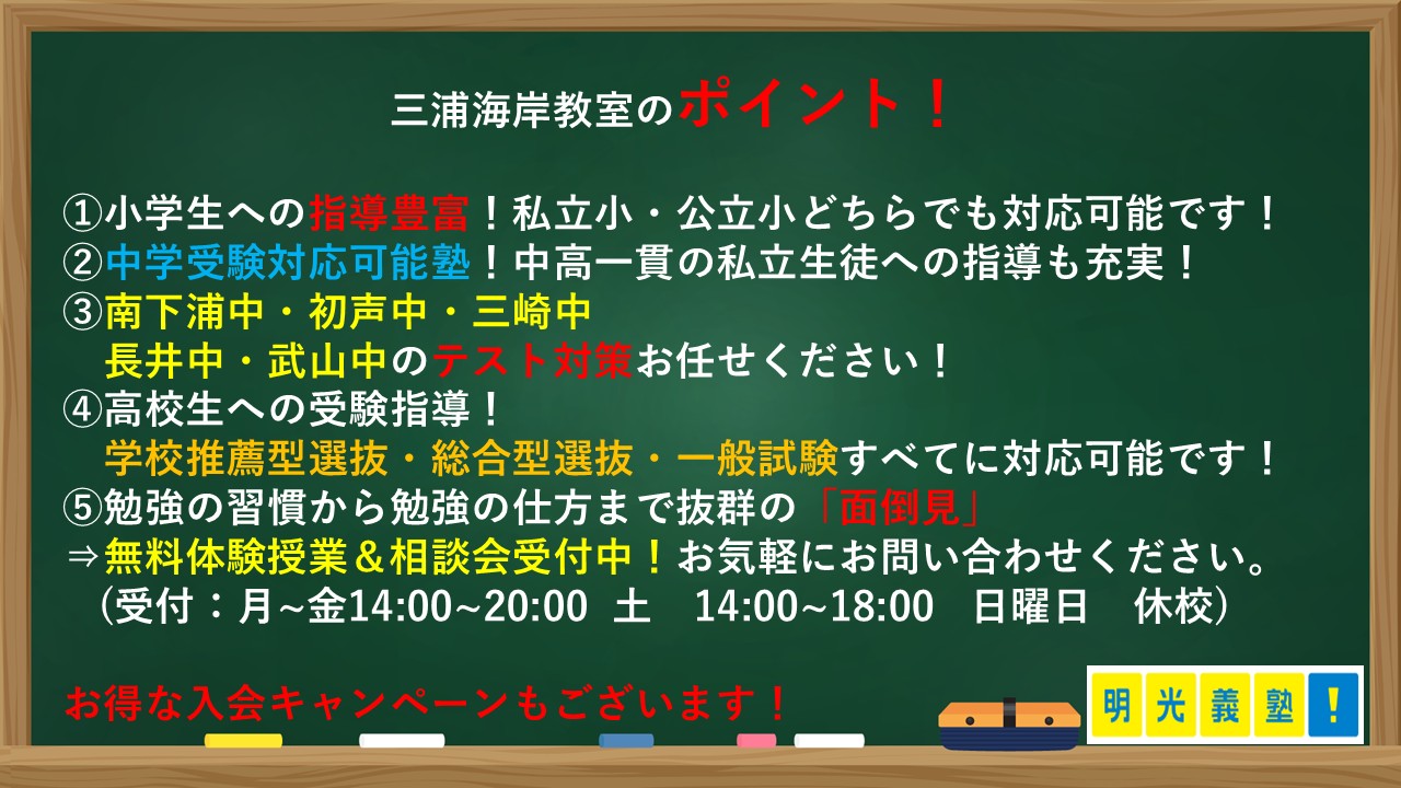 【中学生】南下浦中、初声中、三崎中、長井中、武山中、北下浦中の皆さんは当教室にお任せください