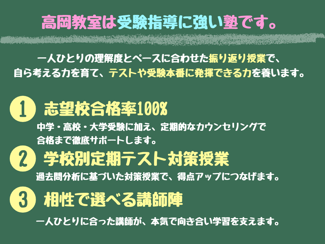 高岡教室は、君と同じ速さで歩みを進めます。