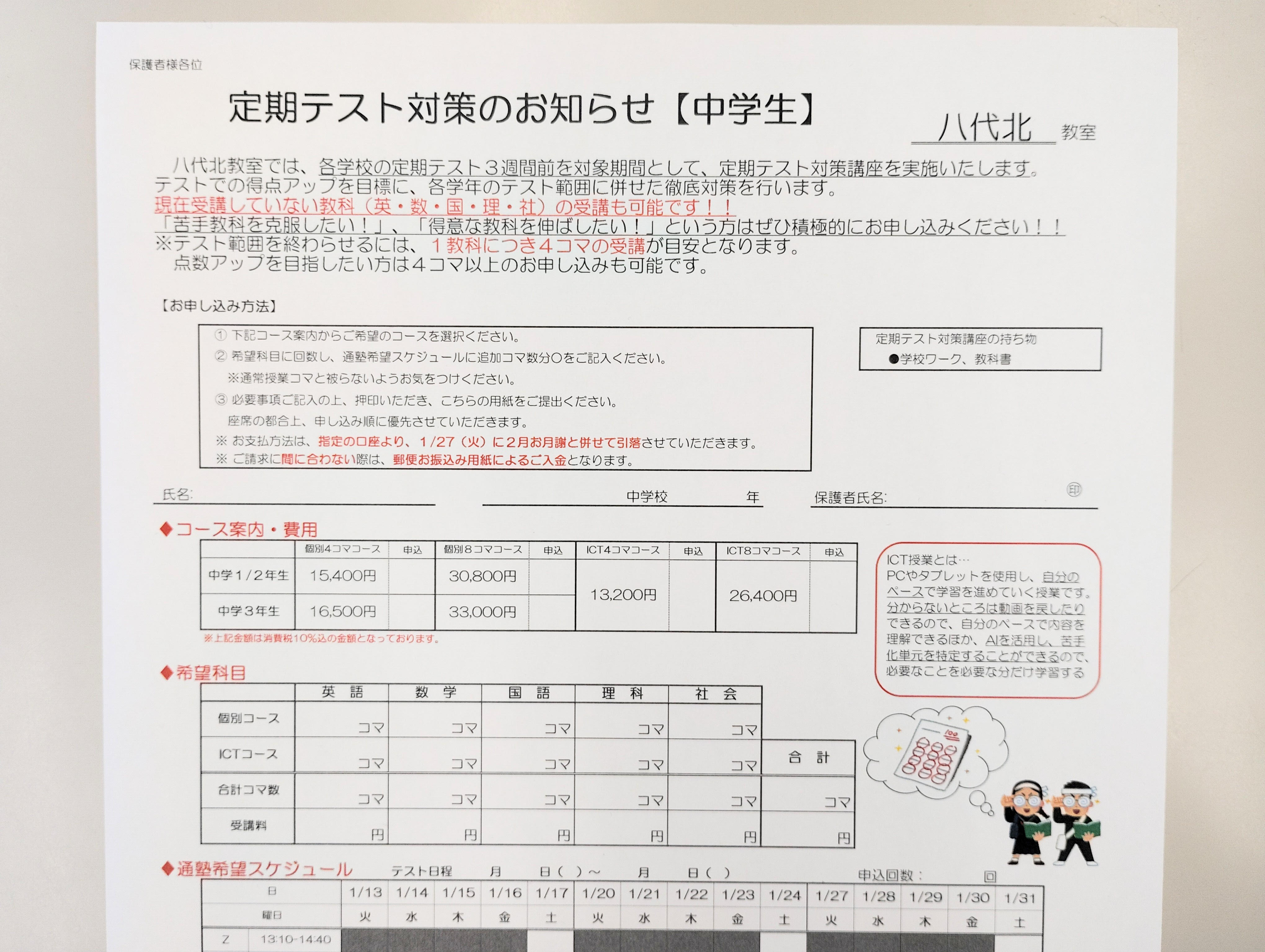 テスト対策→数年分のテスト問題の蓄積と、指導の経験がございます!