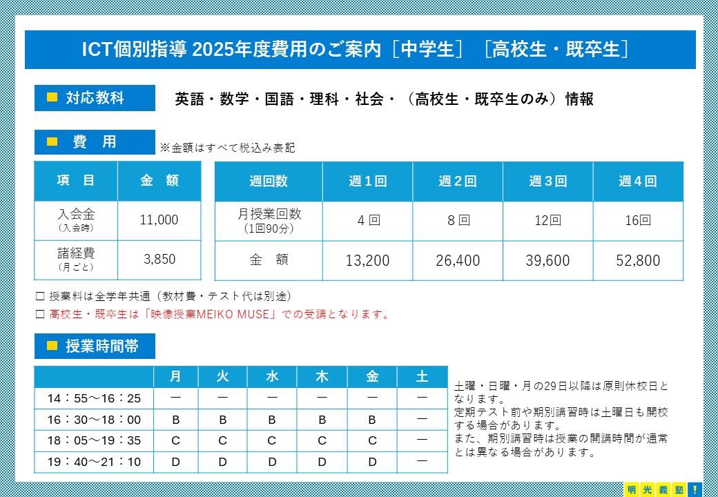 ★ICT個別指導の費用は下記『教室画像』に掲載しております。