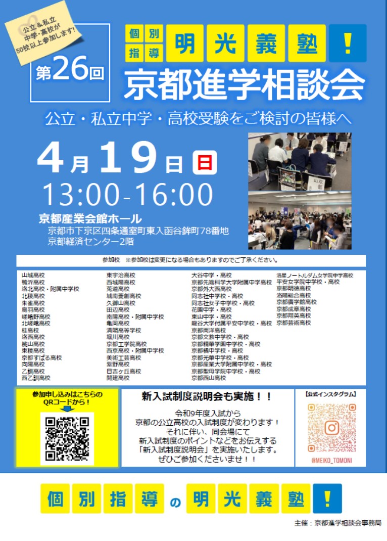 京都府内の公立・私立中学校・高校が参加し、教育方針や入試、学校生活について直接相談できる年に一度のビッグイベントです✨