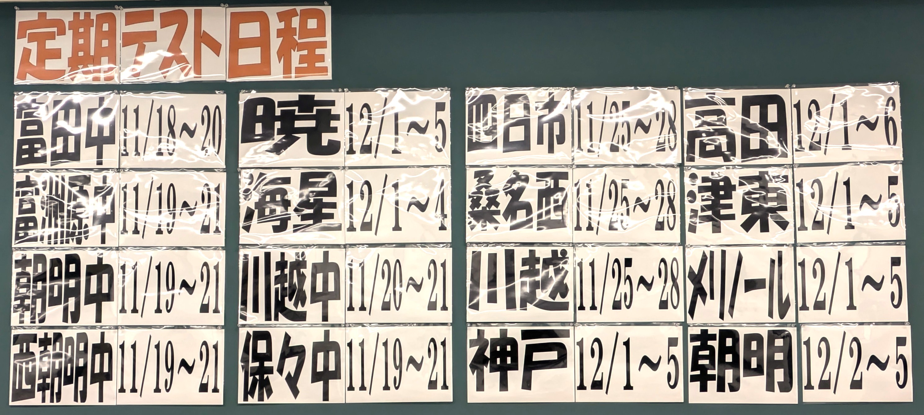 次の2学期期末考査は、多くの中学校で11月下旬から12月初旬に予定されています。