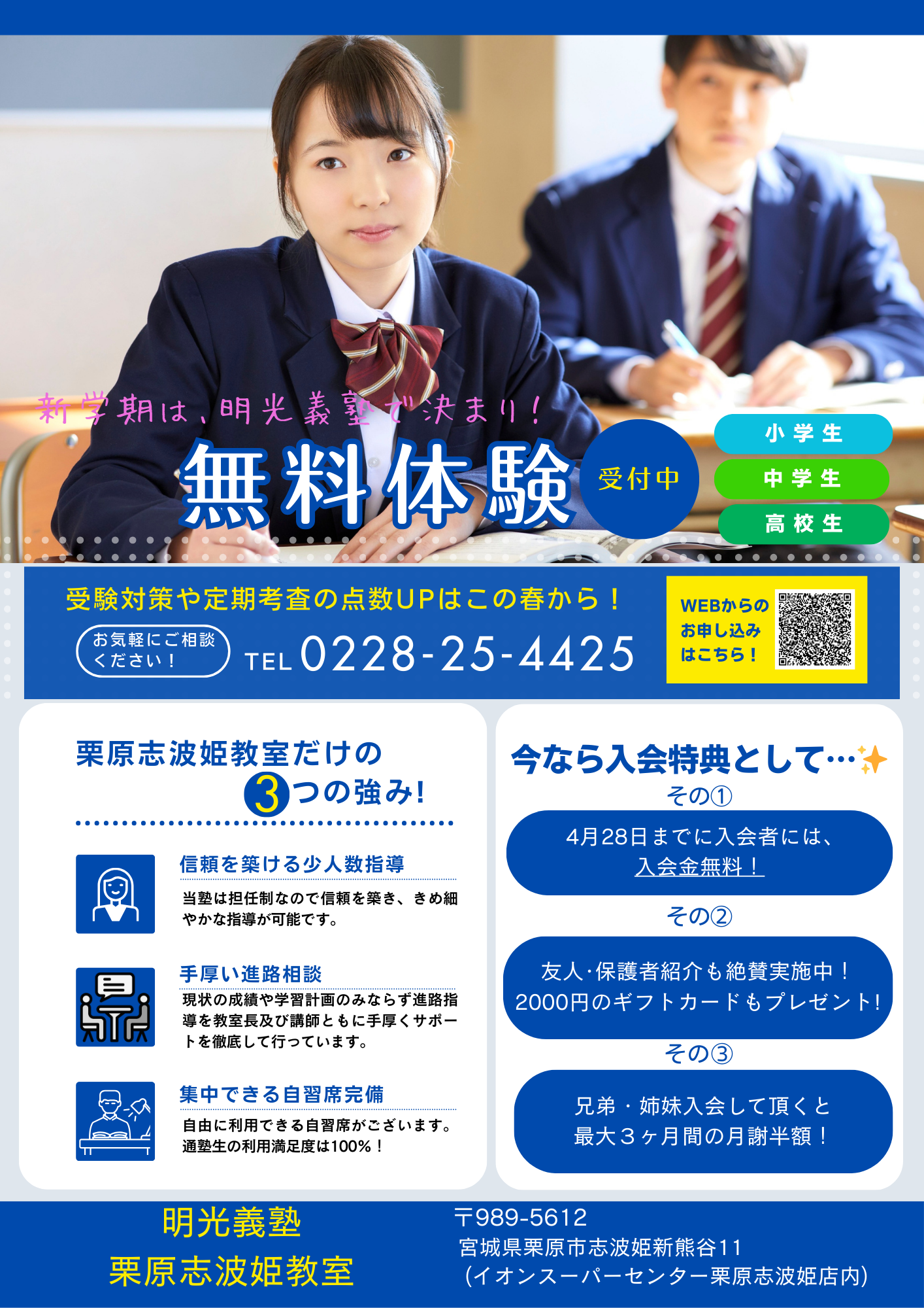 ★受験・前期中間テスト対策、塾を探し始めた方もこの春から是非~♪