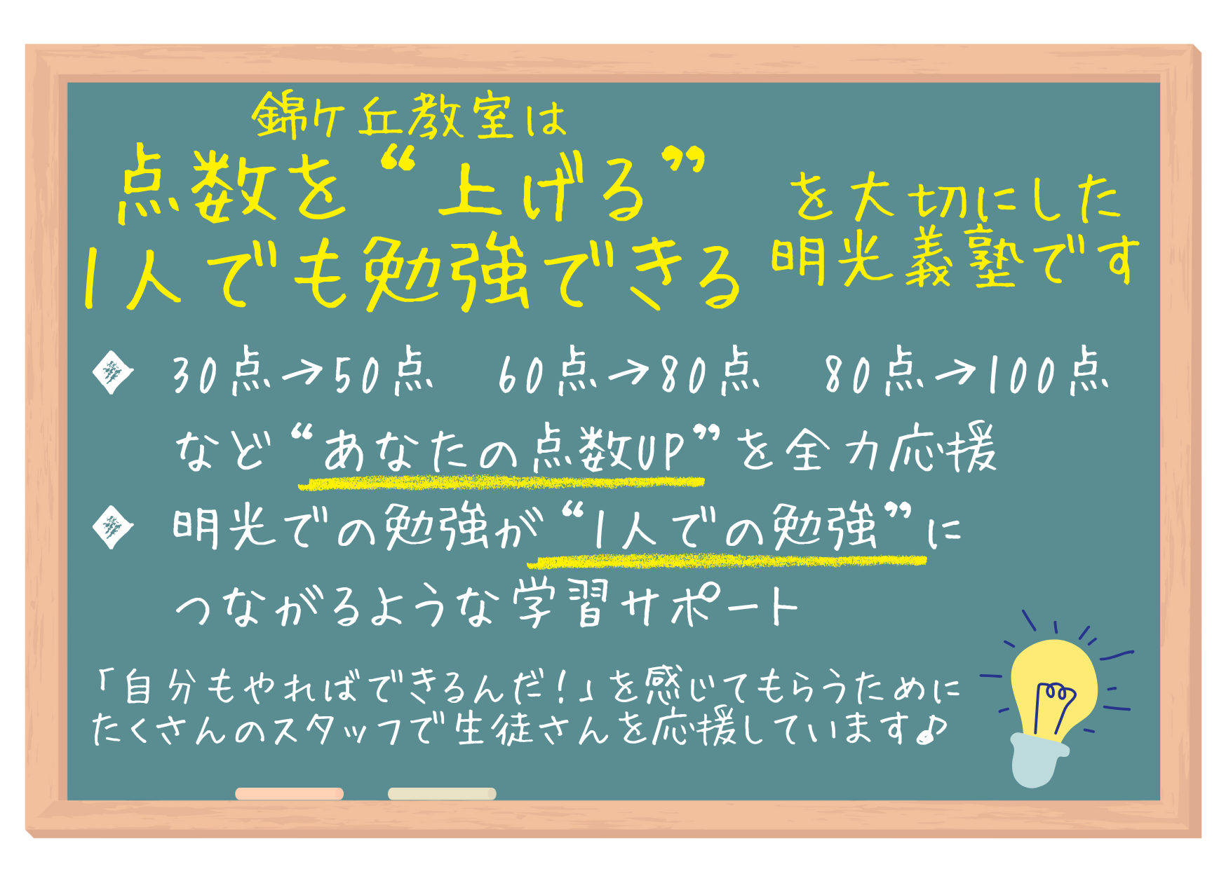 錦ケ丘教室はこんな生徒さん、出来るだけ楽しく勉強したいんだ!という生徒さんにぴったりです♪