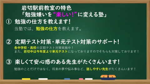 『勉強嫌いを”楽しい”に変える塾』です。