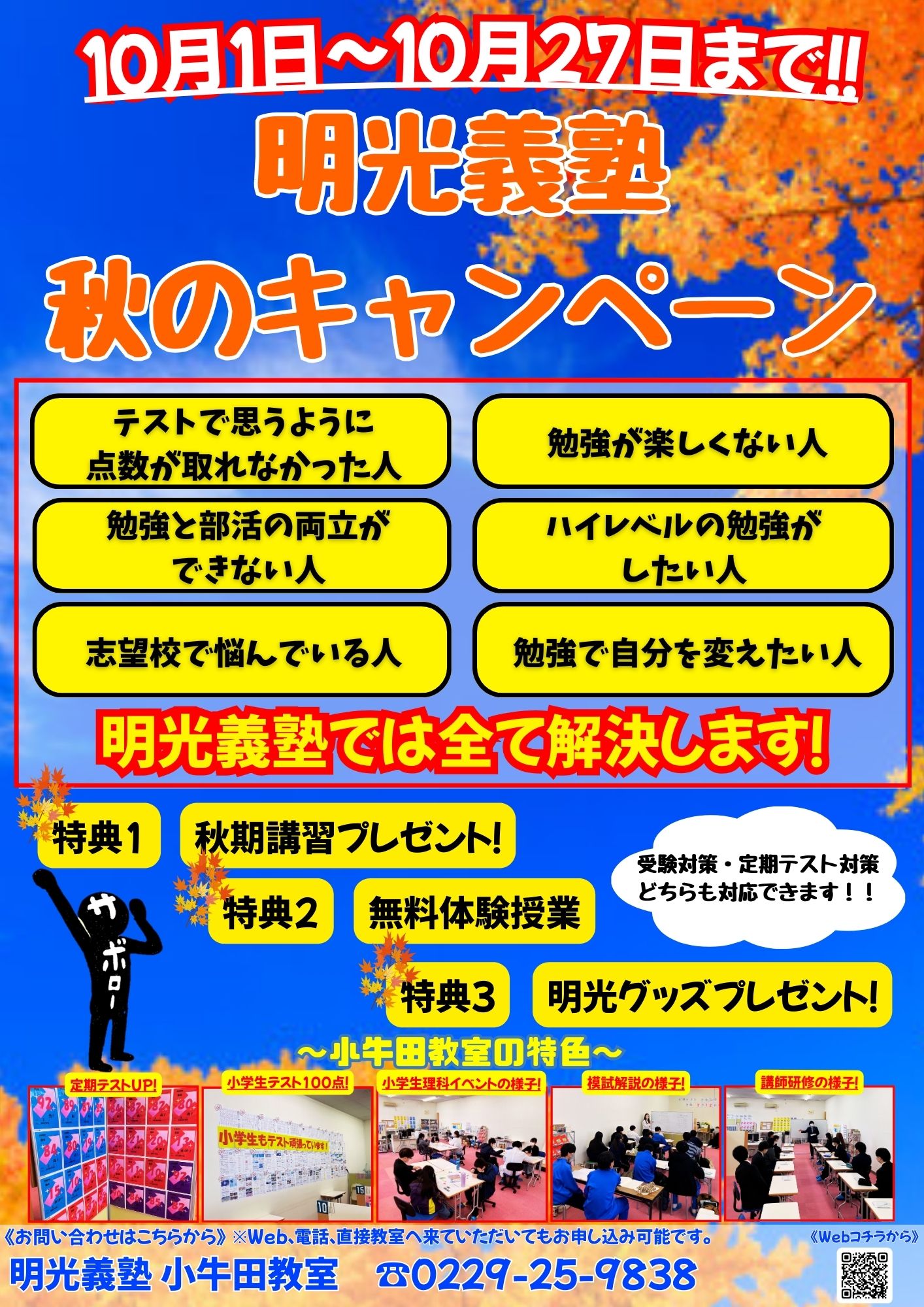 また、来月には早速後期初めての定期テストが行われるので、早めから万全の準備で臨みましょう!