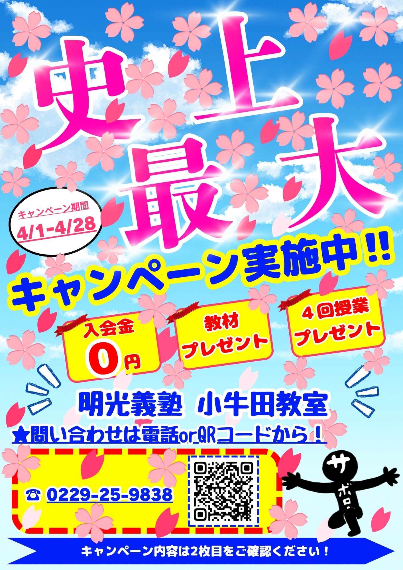お問合せは明光義塾小牛田教室まで!