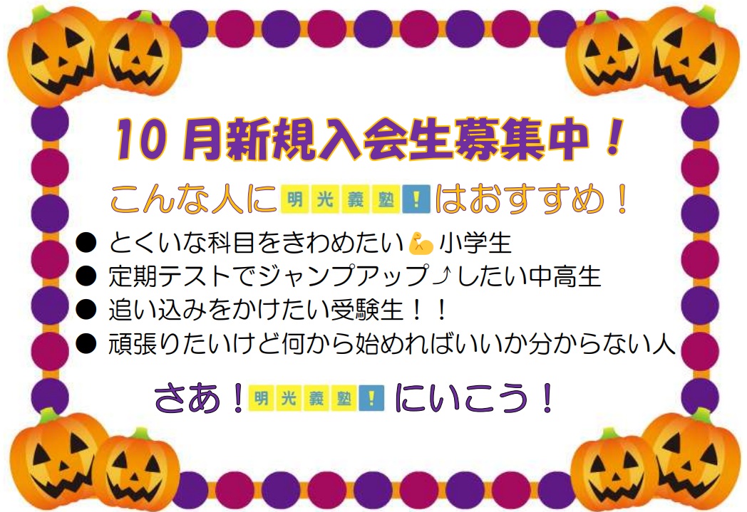 10月の定期テスト・実力テスト対策・受験対策は是非明光義塾で!