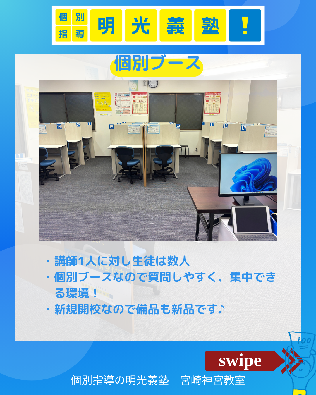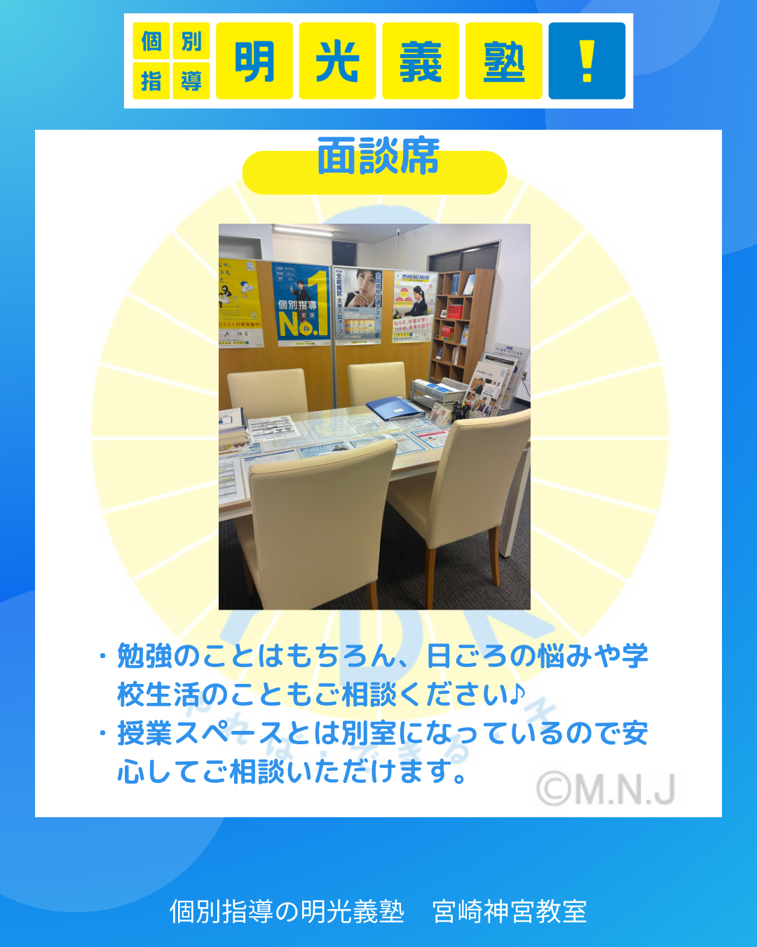 明光義塾 宮崎神宮教室は小・中・高、全学年対応の「個別指導塾」です。