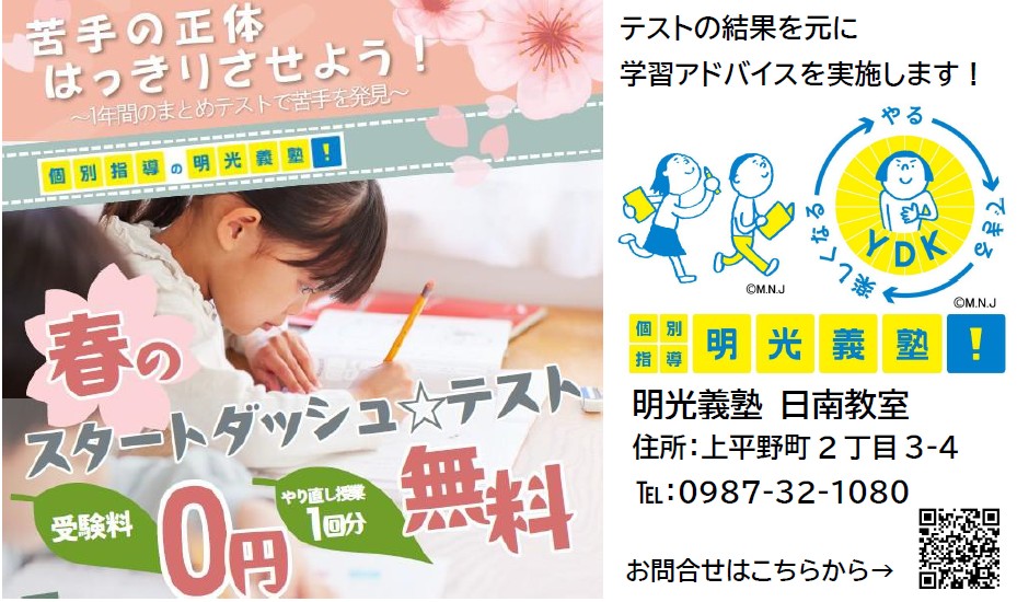 苦手な単元は今のうちに克服しましょう。明光義塾日南教室では