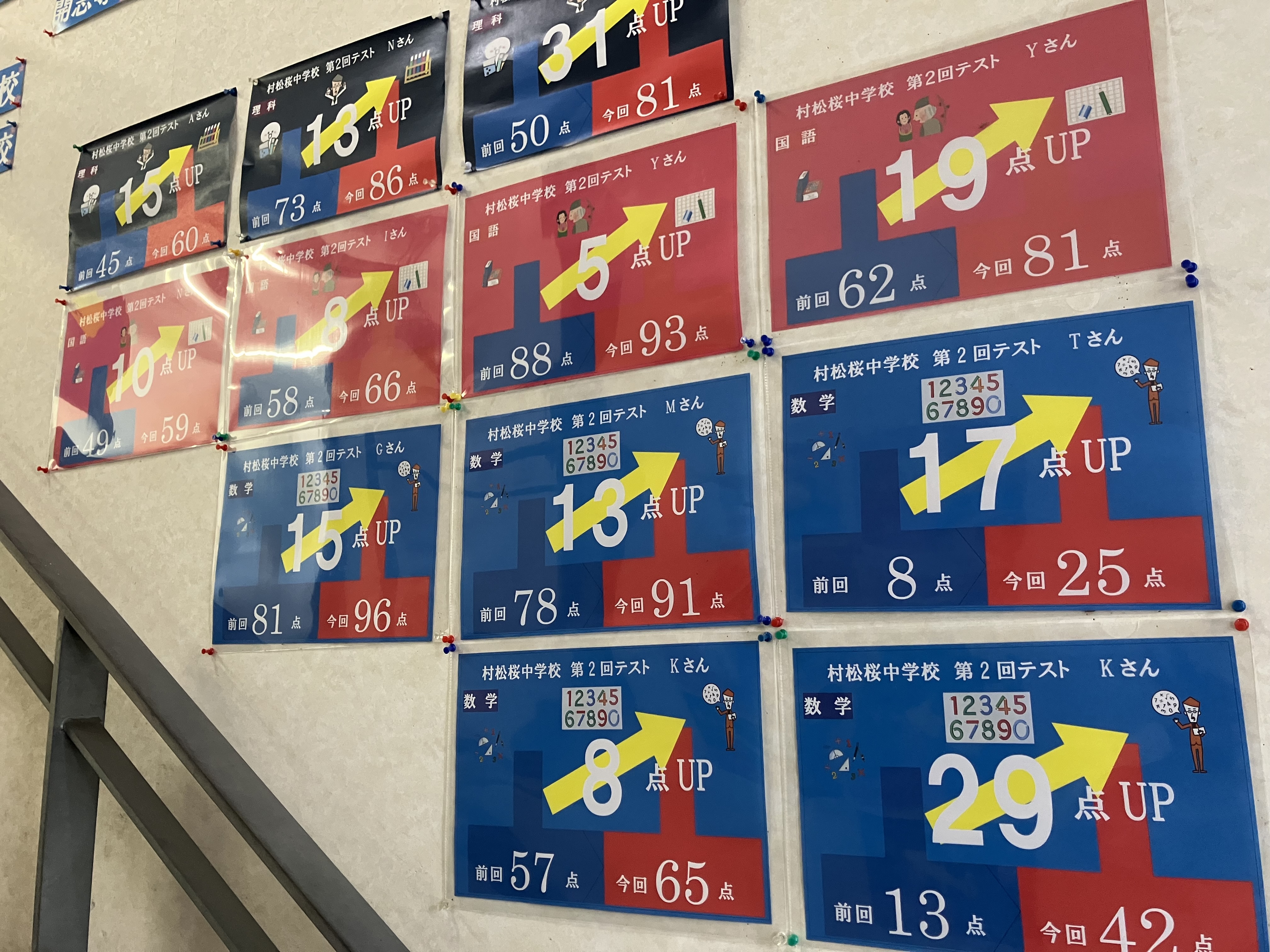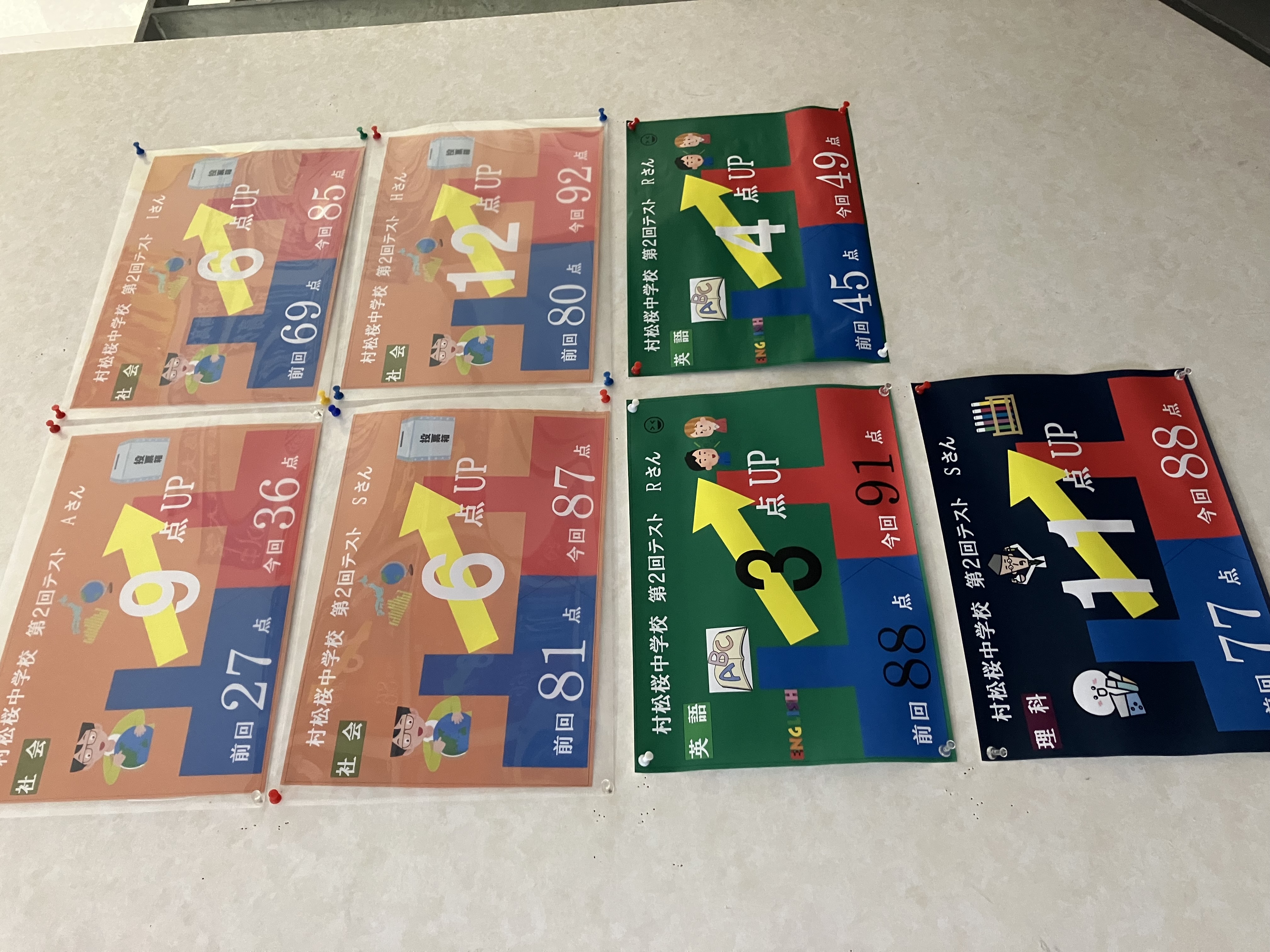 第2回定期テスト結果1です。皆さん、結構点数が上がりました。
