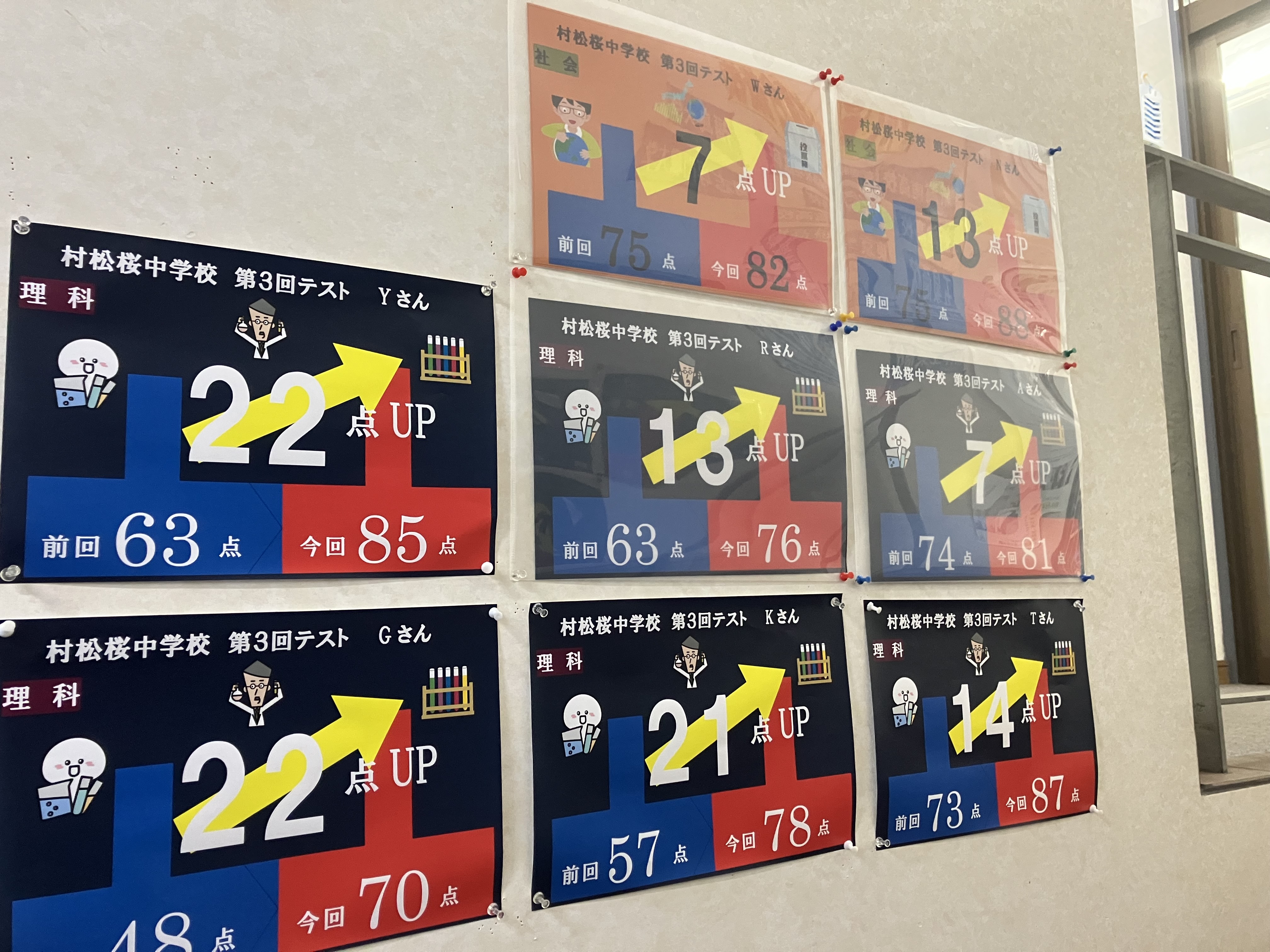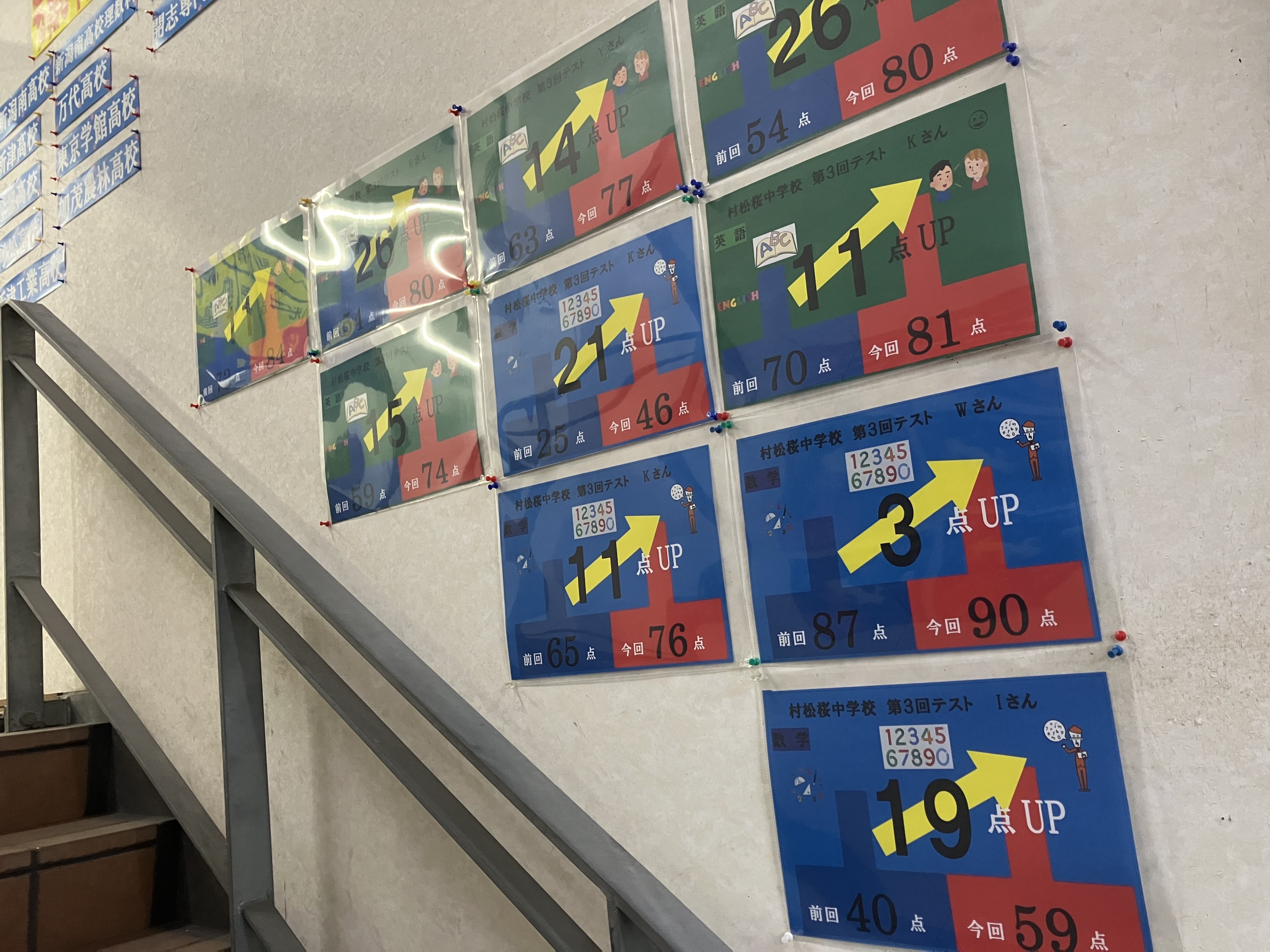第3回定期テスト結果2です。階段左手です。