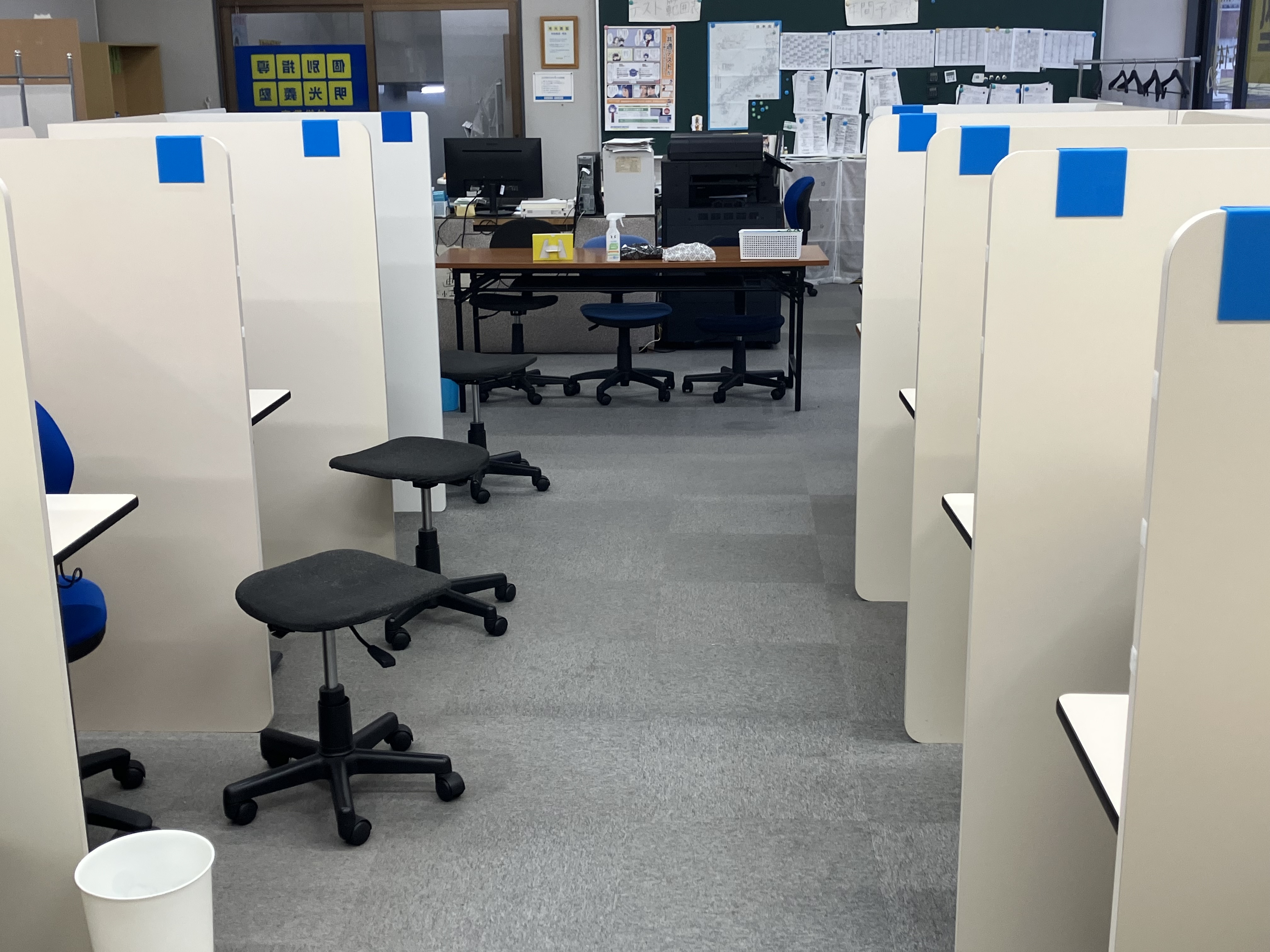 教室の奥から中を撮影しました。左と右に分かれて授業を受けます