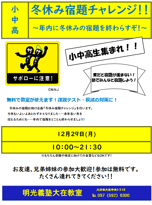 *第4回は期末テストのやり直しをしたい人も是非参加して下さい!