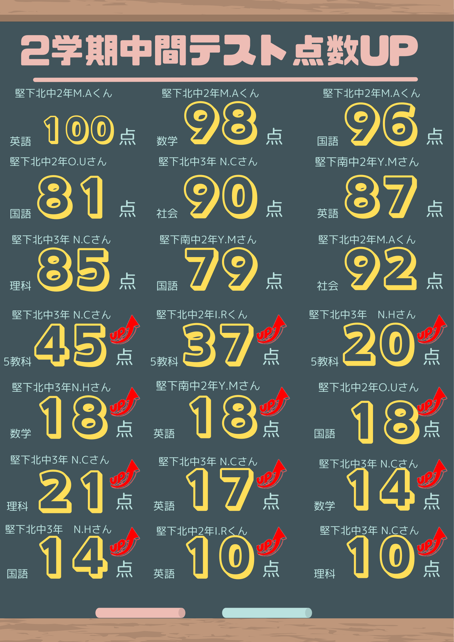 小学生のみなさんは検定合格や中学準備に向けて、中学受験生も受験に向けて頑張っています。