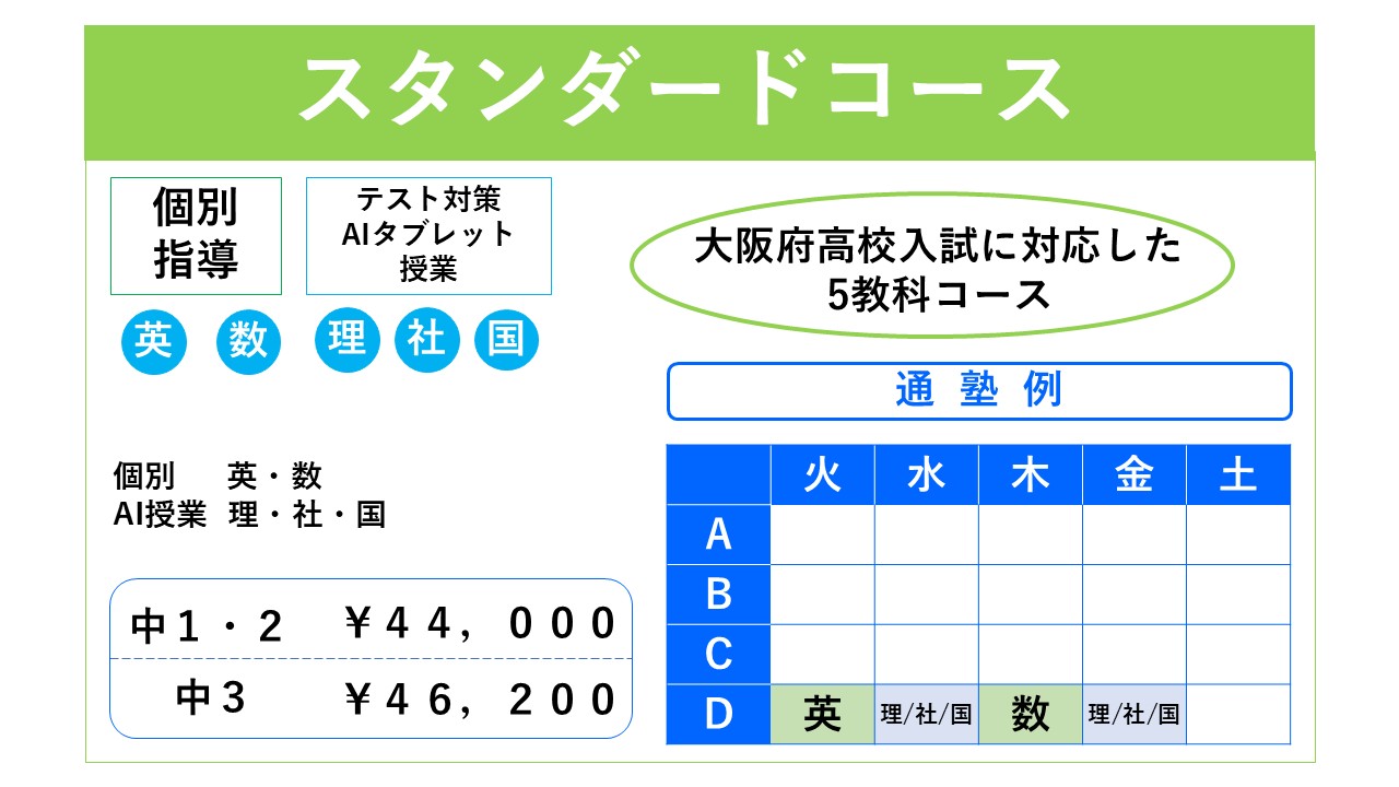 ※大阪市にお住まいの方(小5~中3)は塾代助成カードをご利用できます!
