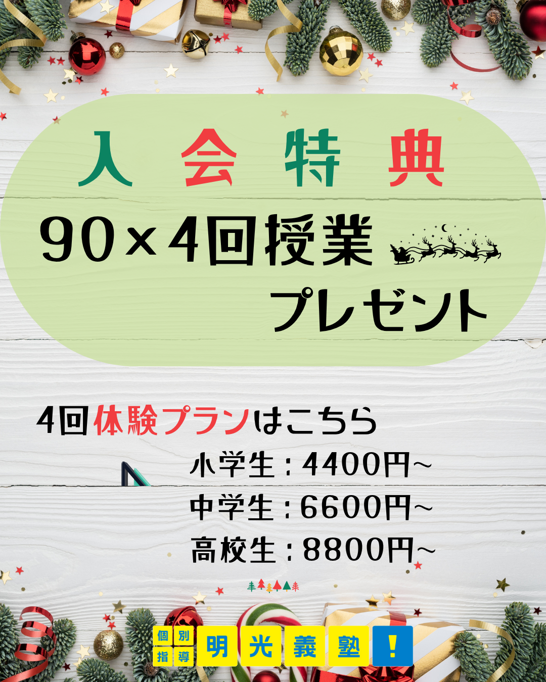 ☆ご入会されると90分×4回授業無料 ☆お得なお値段でお試し授業が受けられる!!