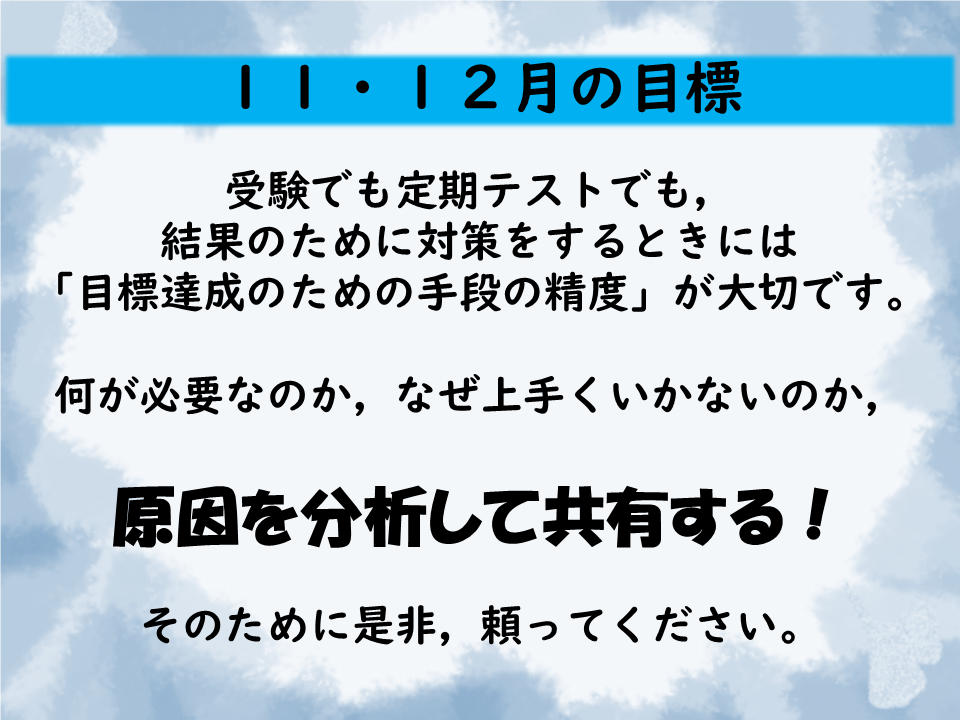【目標共有】を大切に論理的・計画的な学習を!