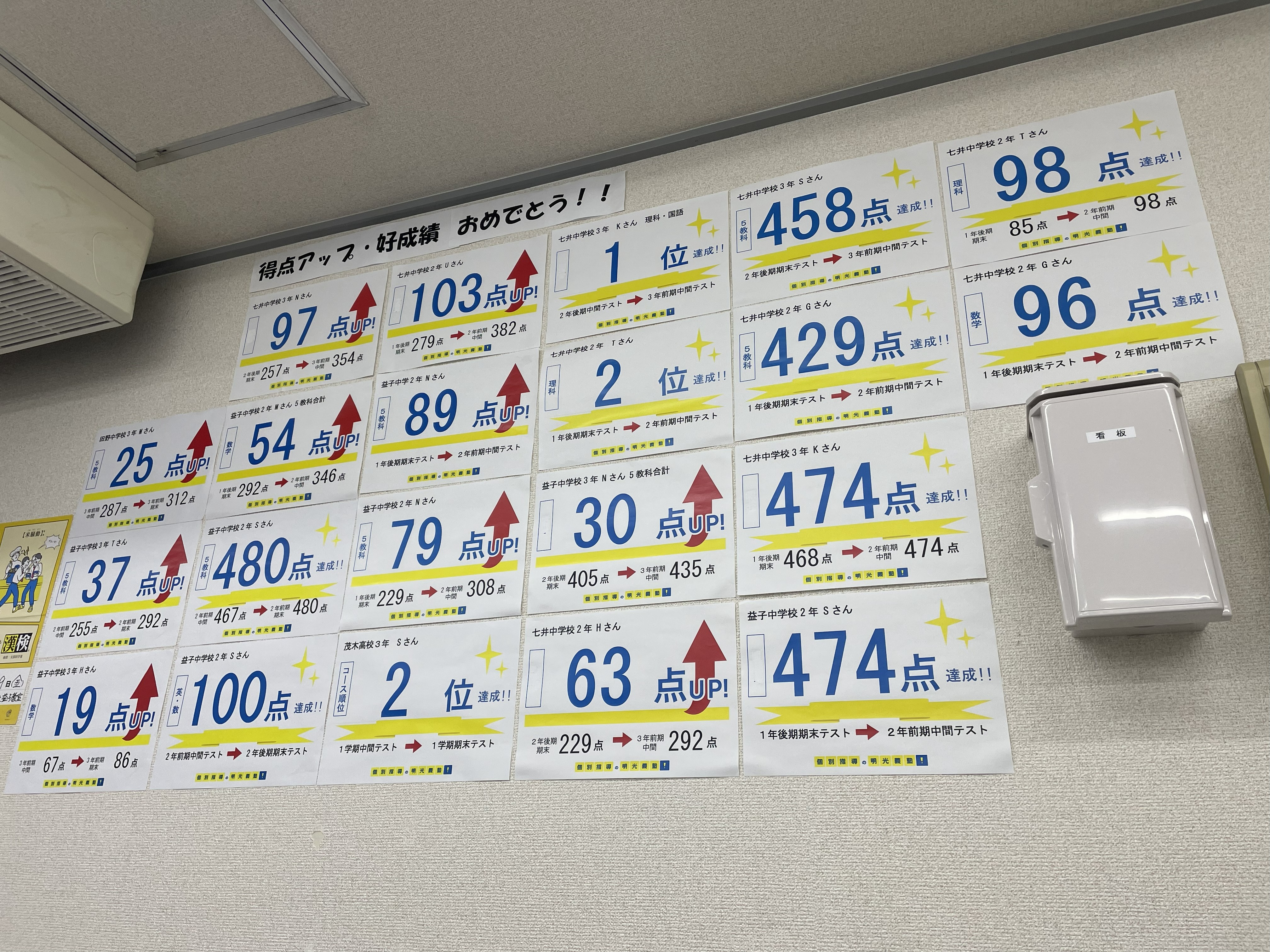 定期テスト5教科100点以上アップ!1教科20点以上アップ!を達成した生徒がいます